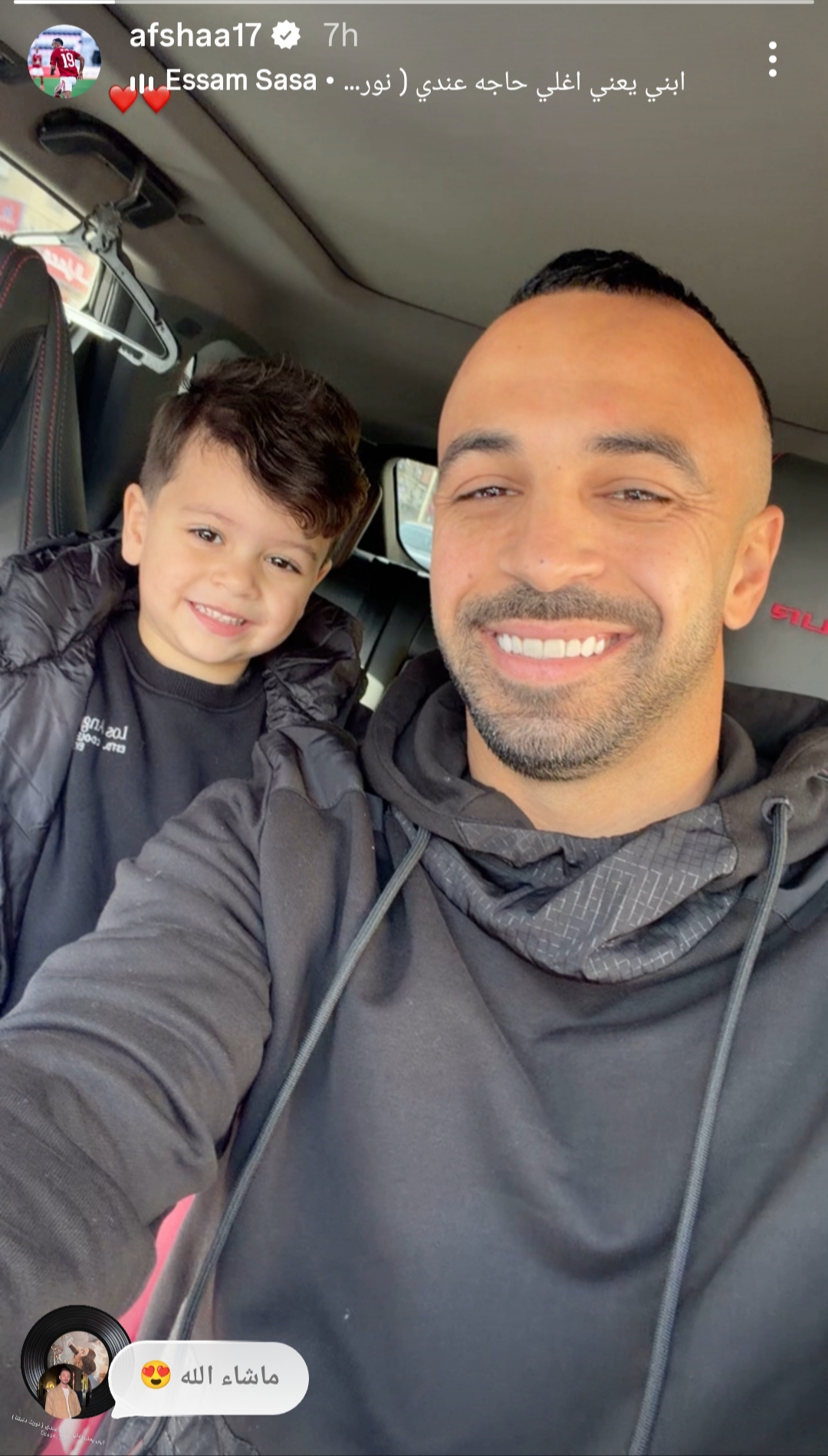 و ظهر أفشة من سيارته برفقة أبنة الصغير ،مما حازت الصورة علي إعجاب متابعيه.