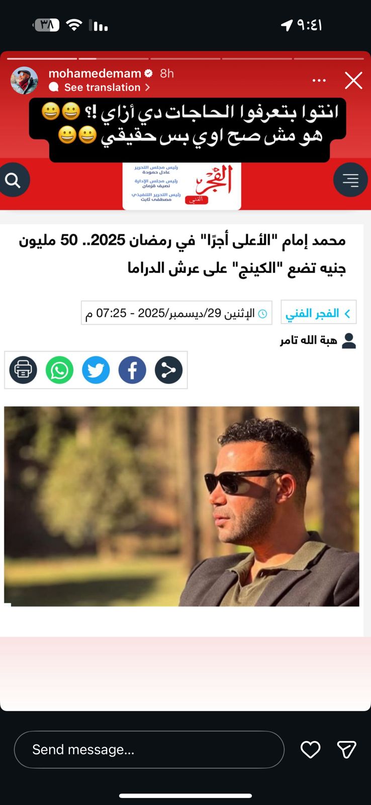 ونشر إمام ، خبرًا عبر حسابه الشخصي على موقع «إنستجرام» يتناول حصوله على أجر يُقدَّر بـ 50 مليون جنيه عن المسلسل، وعلّق عليه قائلًا: «إنتو بتعرفوا الحاجات دي إزاي؟ هو مش صح أوي، بس حقيقي».