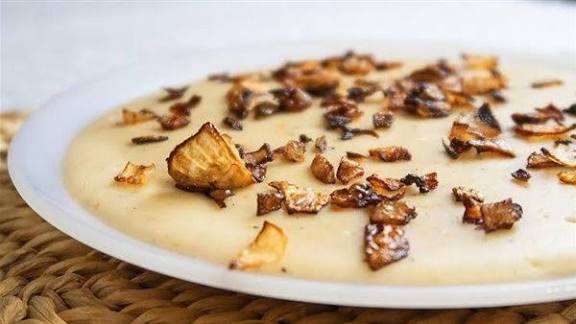 ـ يمكن التحكم في القوام بإضافة مرقة ساخنة حسب الرغبة.