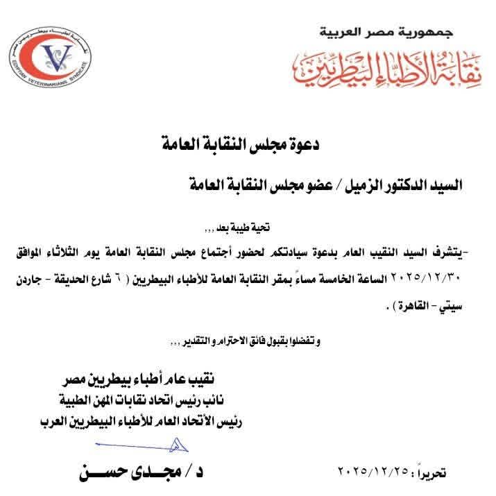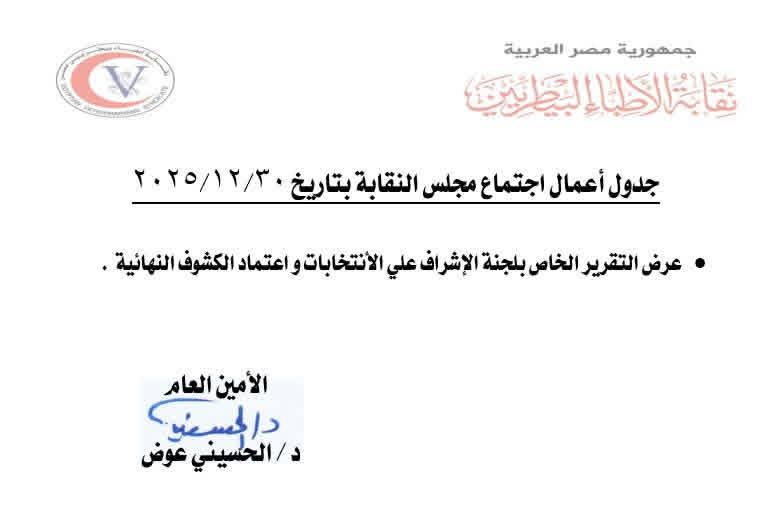 ويأتي هذا الإعلان في وقت يطالب فيه الأطباء البيطريون بموقف نقابي واضح يوازن بين أهداف الدولة في دعم المنظومة البيطرية وحقوق الأطباء وكرامتهم المهنية، عبر سياسات اختيار عادلة تقوم على الكفاءة والخبرة دون إقصاء، وموقف نقابي يعكس مصالح الجمعية العمومية ويحمي مستقبل المهنة.