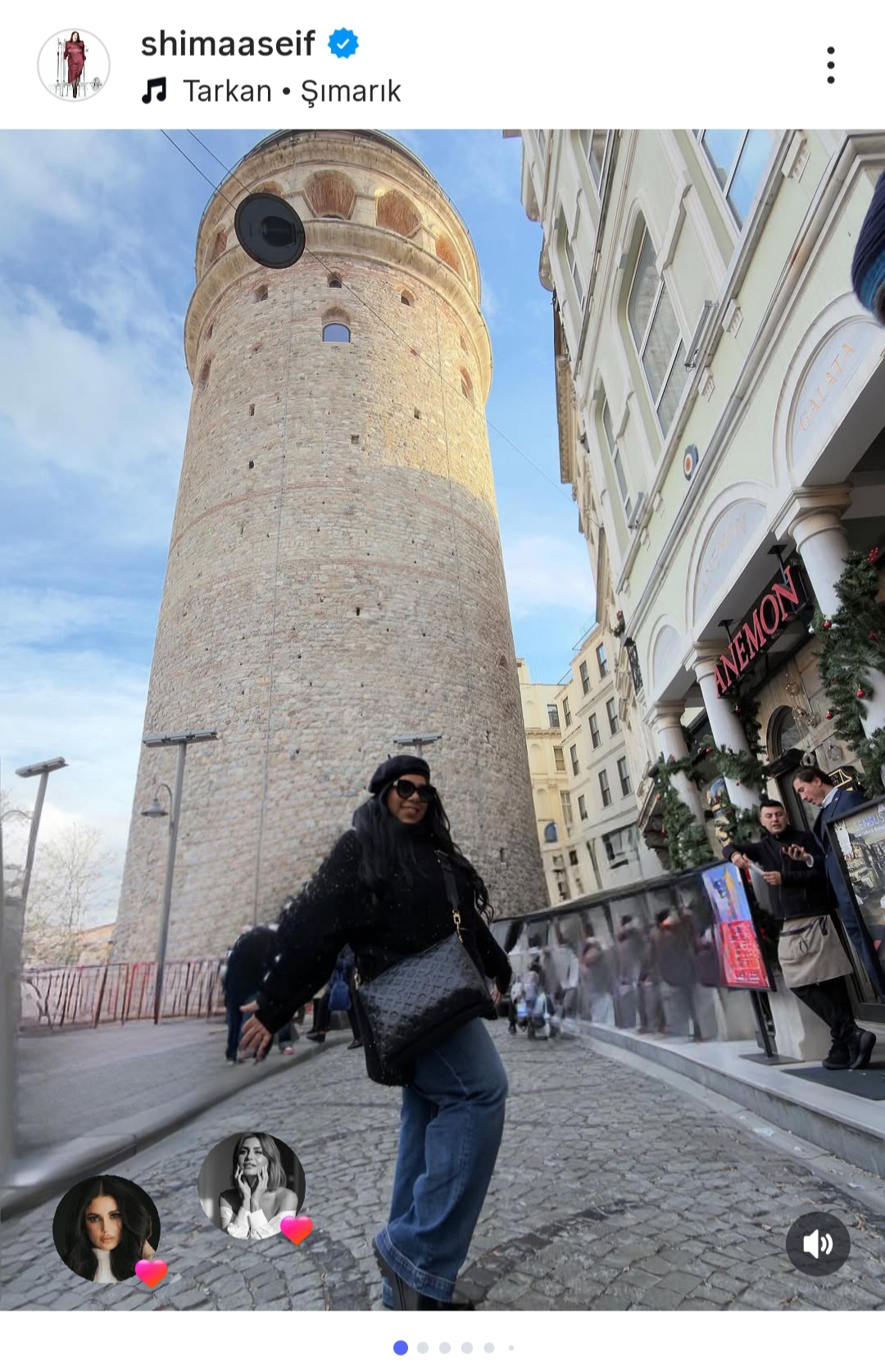 وخطت شيماء سيف أنظار جمهورها بإطلالة لافته من أمام برج اسطنبول و علقت كاتبة: لكل ركن قصة هنا".