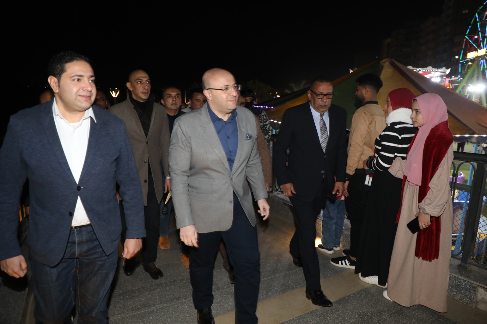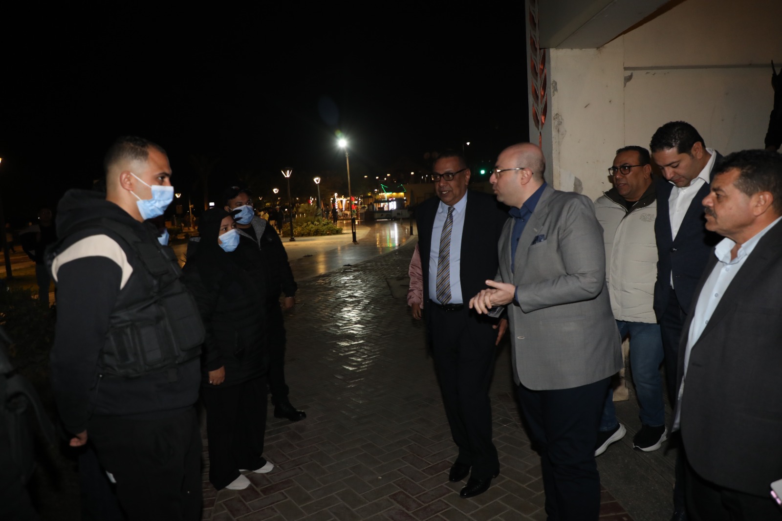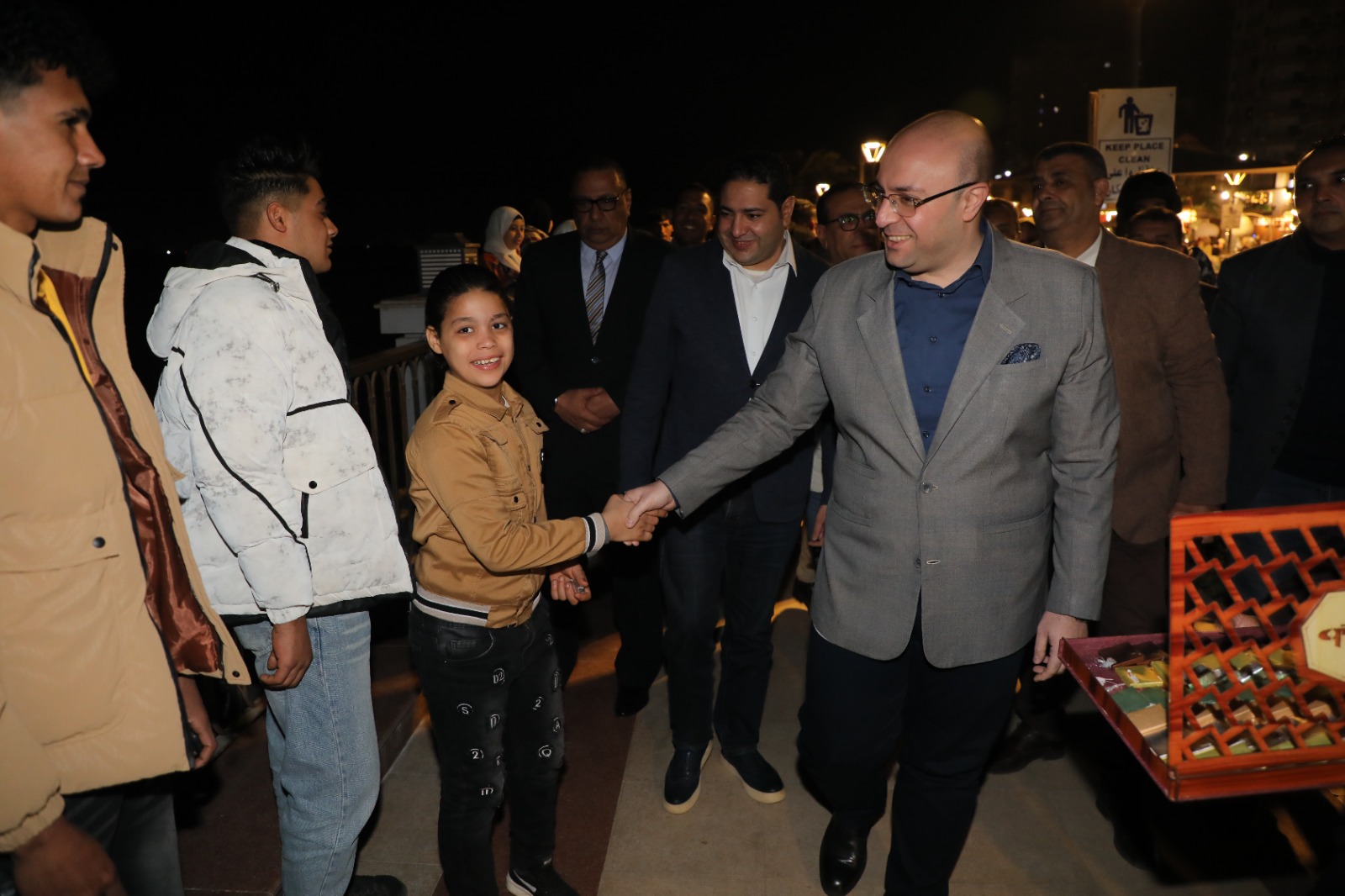 وحرص المحافظ على تهنئة المواطنين بالعام الميلادي الجديد ووزع عليهم الشوكولاتة" خاصة الأطفال "ابتهاجا بهذه المناسبة، معرباً عن أمله أن يكون عاماً سعيدا ملؤه الخير والبركة والمحية، حيث شهدت الجولة أجواء من الفرح والبهجة، موجهاً مسئولي الكورنيش بمواصلة جهود توفير كل الخدمات والسبل لضمان استمتاع المواطنين والزوار بالممشى خلال احتفالات رأس السنة،موجها بتكثيف أعمال النظافة بالممشى السياحي والكورنيش، وتنظيم حركة الدخول والخروج، مع توفير فرق عمل على مدار الساعة للتعامل مع أي طوارئ خلال الاحتفالات.