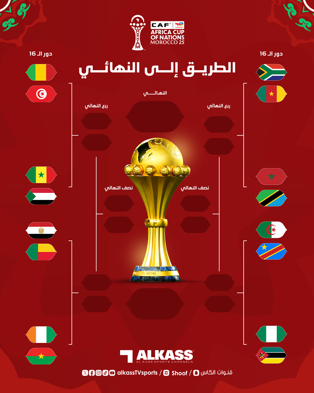أنتهت منافسات دور الـ 16 من بطولة كأس الأمم الإفريقية 2025 حيث حسم منتخب مصر التأهل لثمن النهائي بعد تصدر مجموعته.