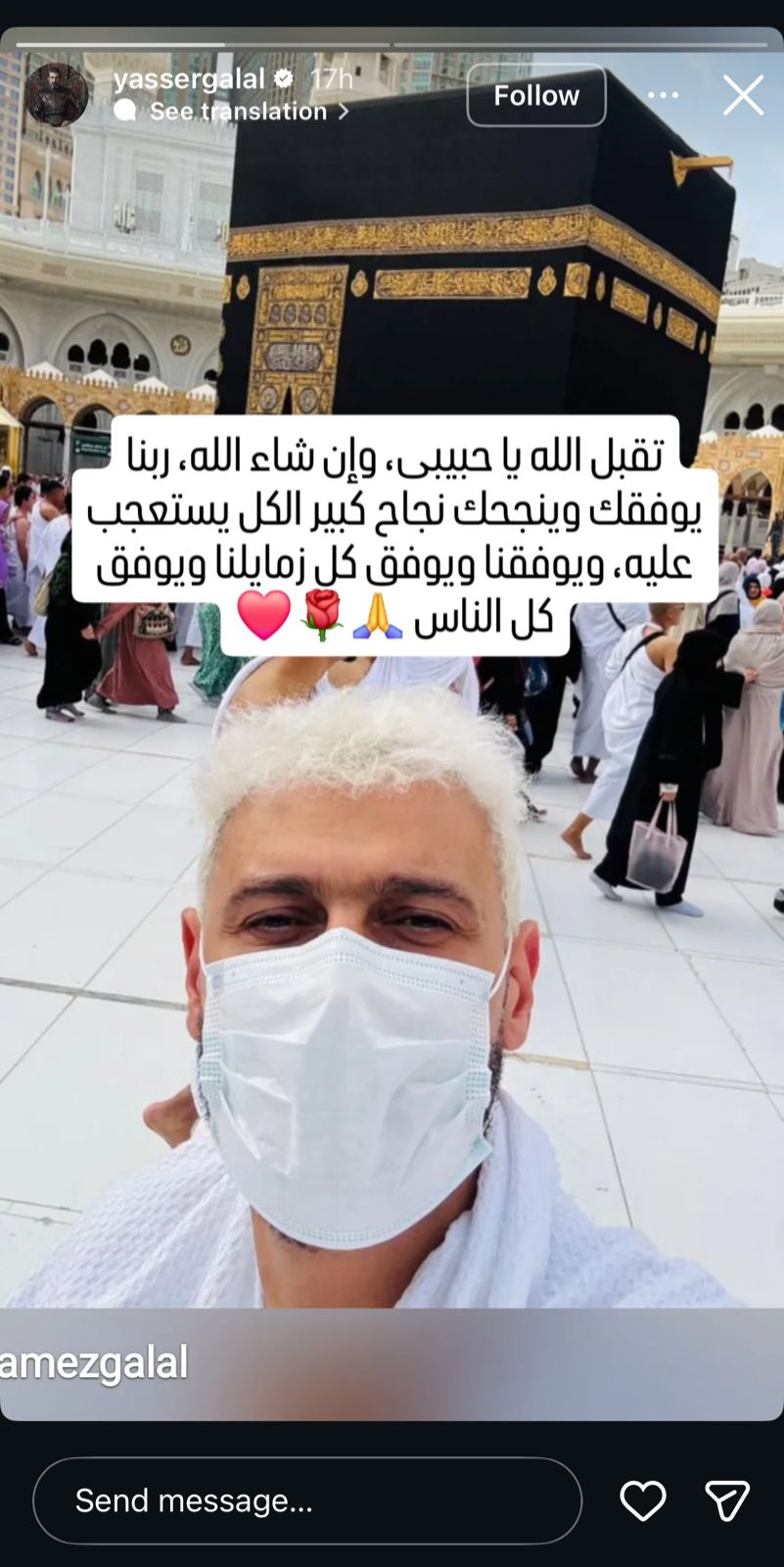 وكتب ياسر جلال عبر ستوري حسابه الشخصي على انستجرام: “تقبل الله يا حبيبي وان شاء الله ربنا يوفقك وينجحك نجاح كبير الكل يستعجب عليه، ويوفقنا ويوفق كل زمايلنا”.