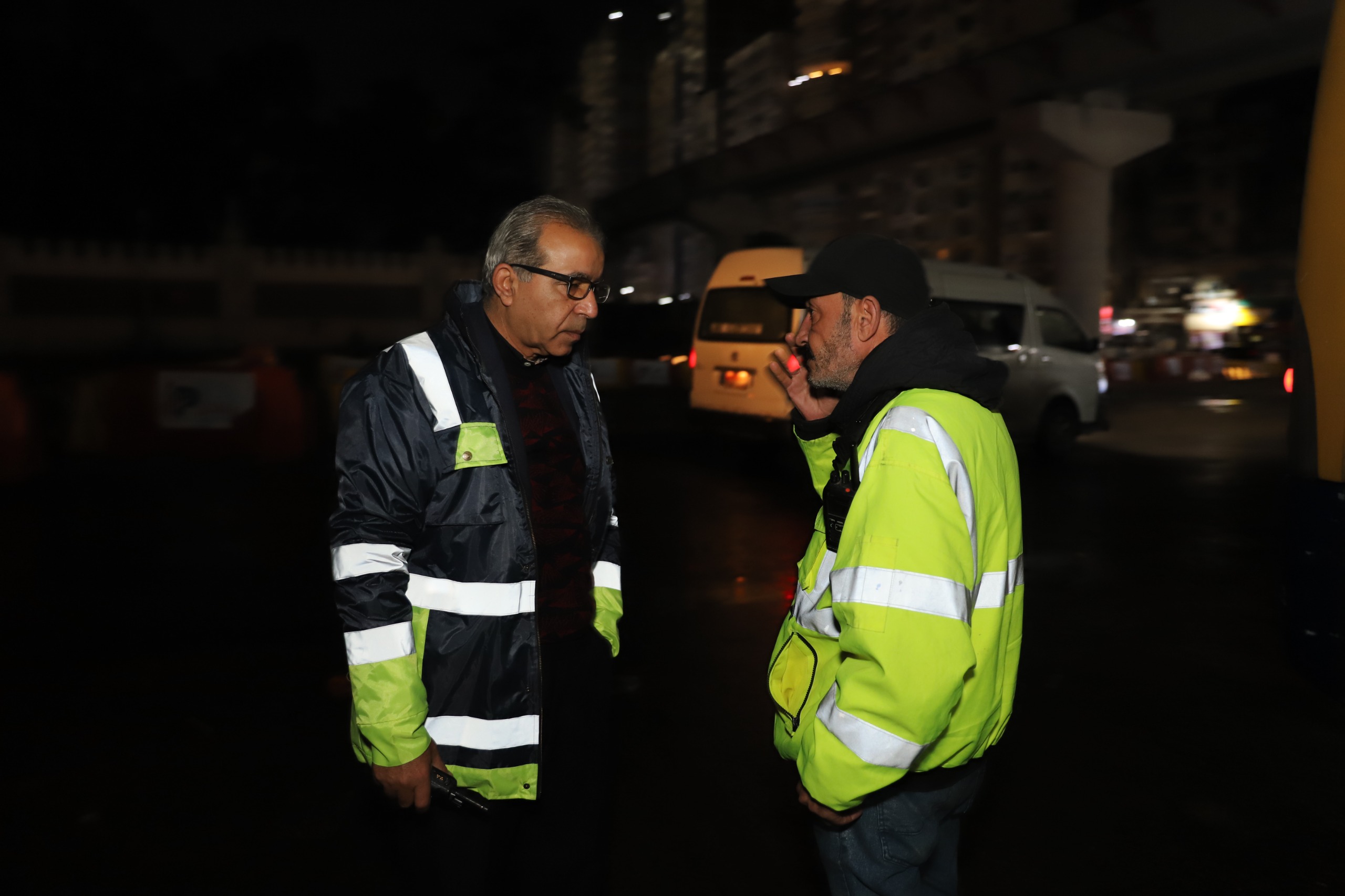 متابعة ميدانية لرئيس شركة الصرف الصحي بالإسكندرية أثناء النوة