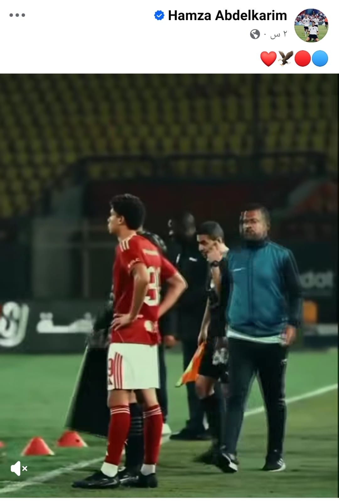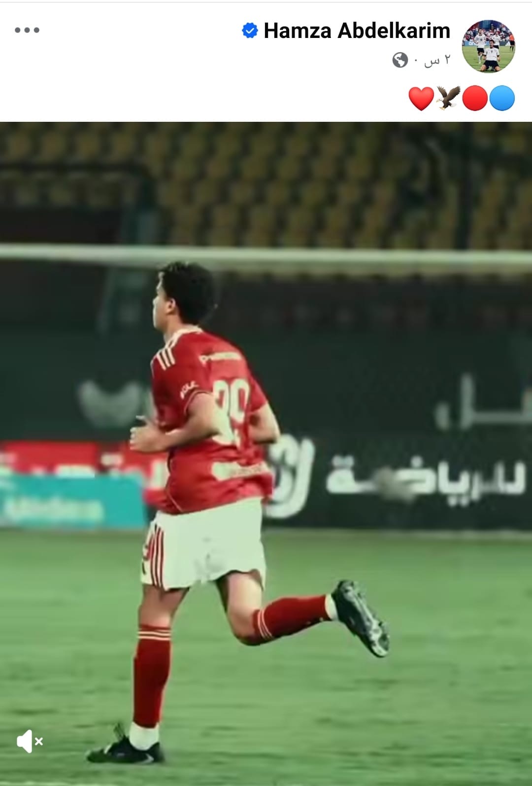 نشر لاعب النادي الأهلي حمزة عبد الكريم، فيديو عبر حسابه الشخصي بموقع فيسبوك وذلك عقب تداول أخبار تؤكد اقترابه من الانضمام إلى برشلونة.