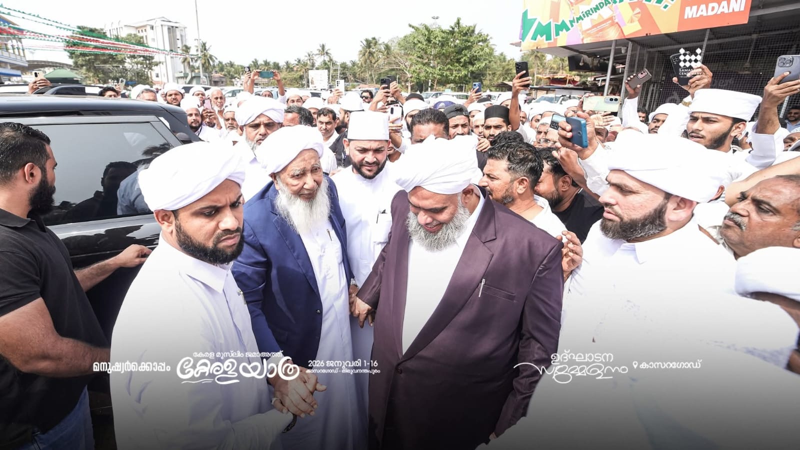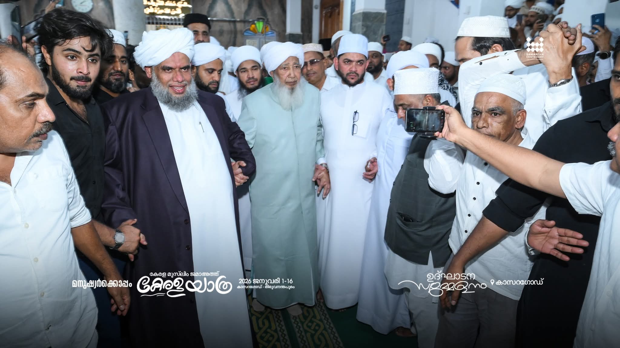 وتحت شعار «مع الإنسان»، لقيت رحلة كيرلا التي يقودها مفتي الهند استقبالًا حافلًا في أولال. وبين تكبيرات مئات من الناشطين السُّنّة، سلّم رئيس الجمعية إي. سليمان مسليار ورئيس لجنة الرحلة ك. س. أتاكوي تانغَل (كومبول) راية المسيرة إلى قائدها من مقام أولال. وشارك في الموكب نوّاب القائد السيد إبراهيم خليل بخاري وبيرود عبد الرحمن الثقافي، ورئيس جمعية علماء كرناتكا عبد الحميد مسليار ماني، ورئيس برلمان كرناتكا يو. تي. خادر، ورئيس المقام حنيف حاجي أولال، ود. محمد فاضل رس وفي كافالكاد وغيرهم. ثم رافقت القيادة السُّنّية في منطقة كاسرغود و«حرس المئوية» الرحلة إلى أرض اللقاء السباعي اللغات. وشارك الآلاف في مؤتمر الافتتاح الذي أُقيم في ساحة إم. إيه. عبد القادر مسليار بتشيركالا.
