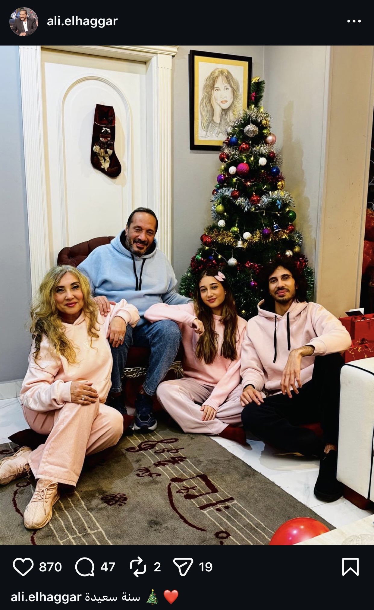 شارك الفنان علي الحجار، صورة مع عائلته عبر حسابه الشخصي بموقع إنستجرام، محتفلين بالعام الجديد.