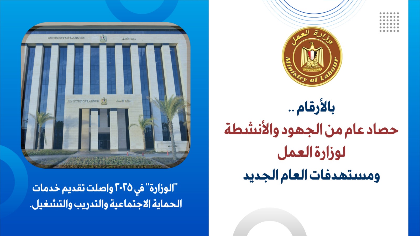 كما ركزت الوزارة على تحسين بيئة العمل، وتطبيق معايير السلامة والصحة المهنية، ومكافحة الظواهر السلبية في سوق العمل... وتعكس هذه الجهود التزام الدولة بتوجيهات القيادة السياسية نحو تمكين العمال وتحفيز الاستثمار...ويؤكد ما تحقق خلال 2025 أن ملف العمل بات أحد الركائز الأساسية لتحقيق التنمية المستدامة والاستقرار الاجتماعي.