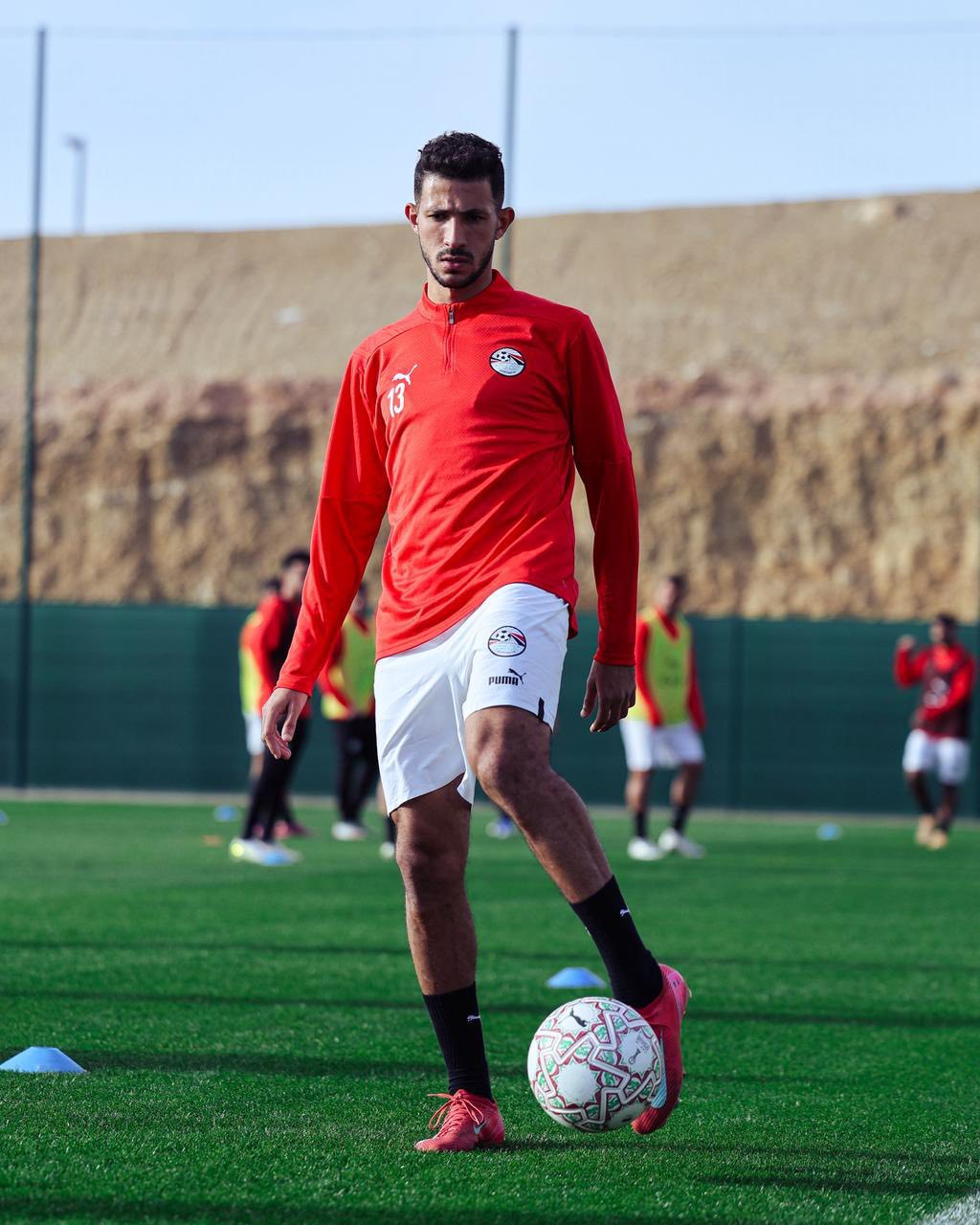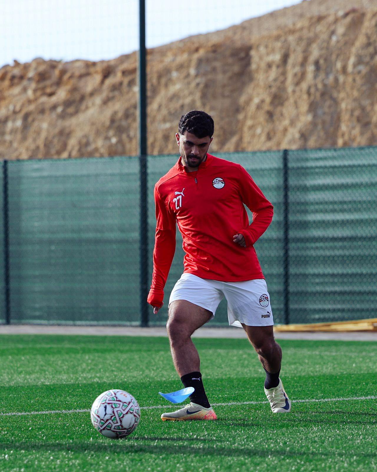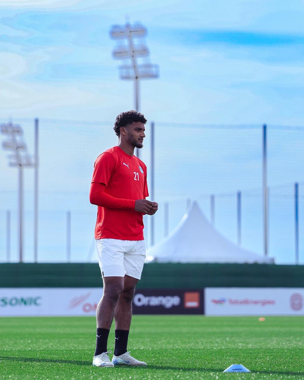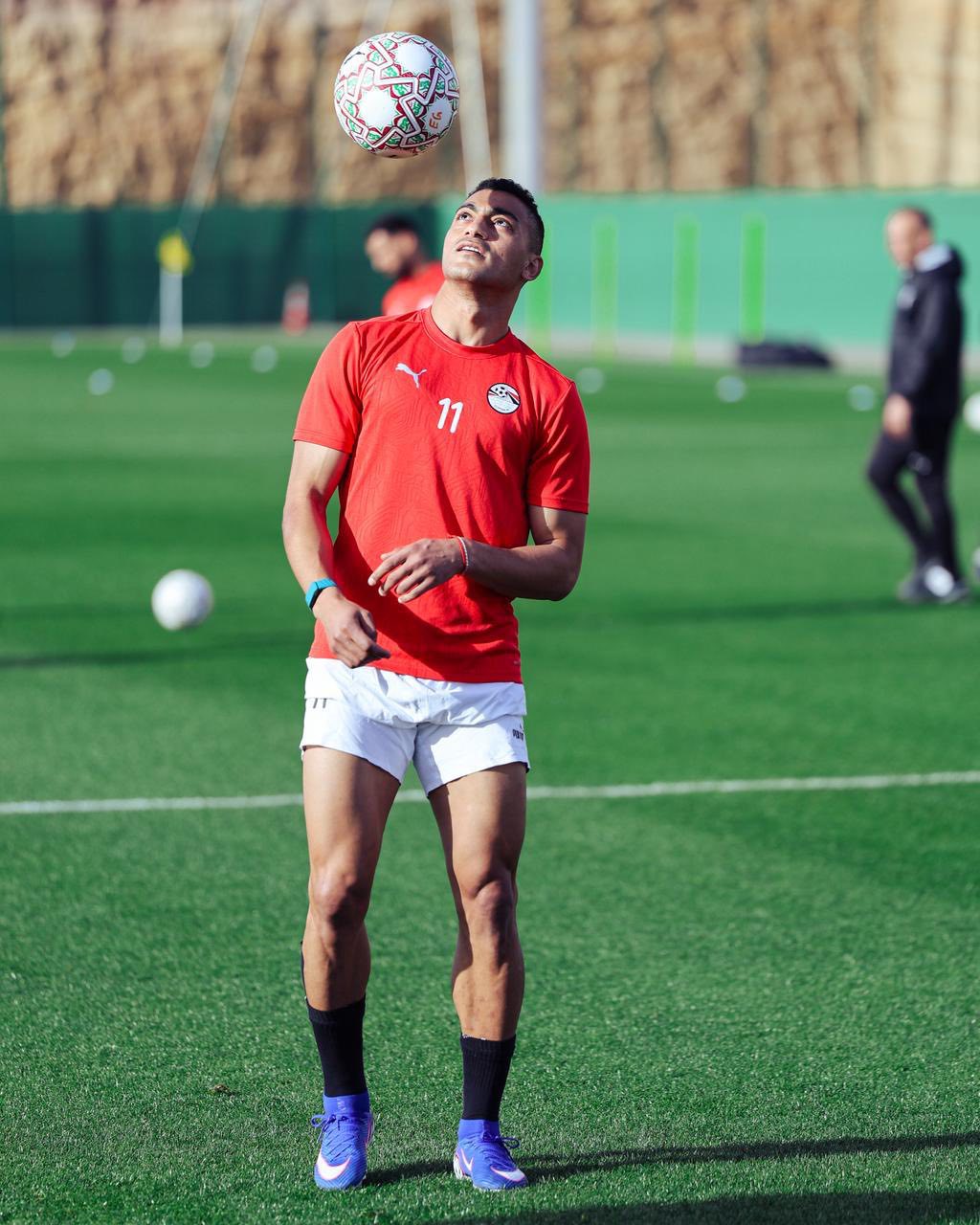 بينما أدى مهند لاشين، لاعب وسط المنتخب، تدريبات تأهيلية، استعداداً للمباراة.