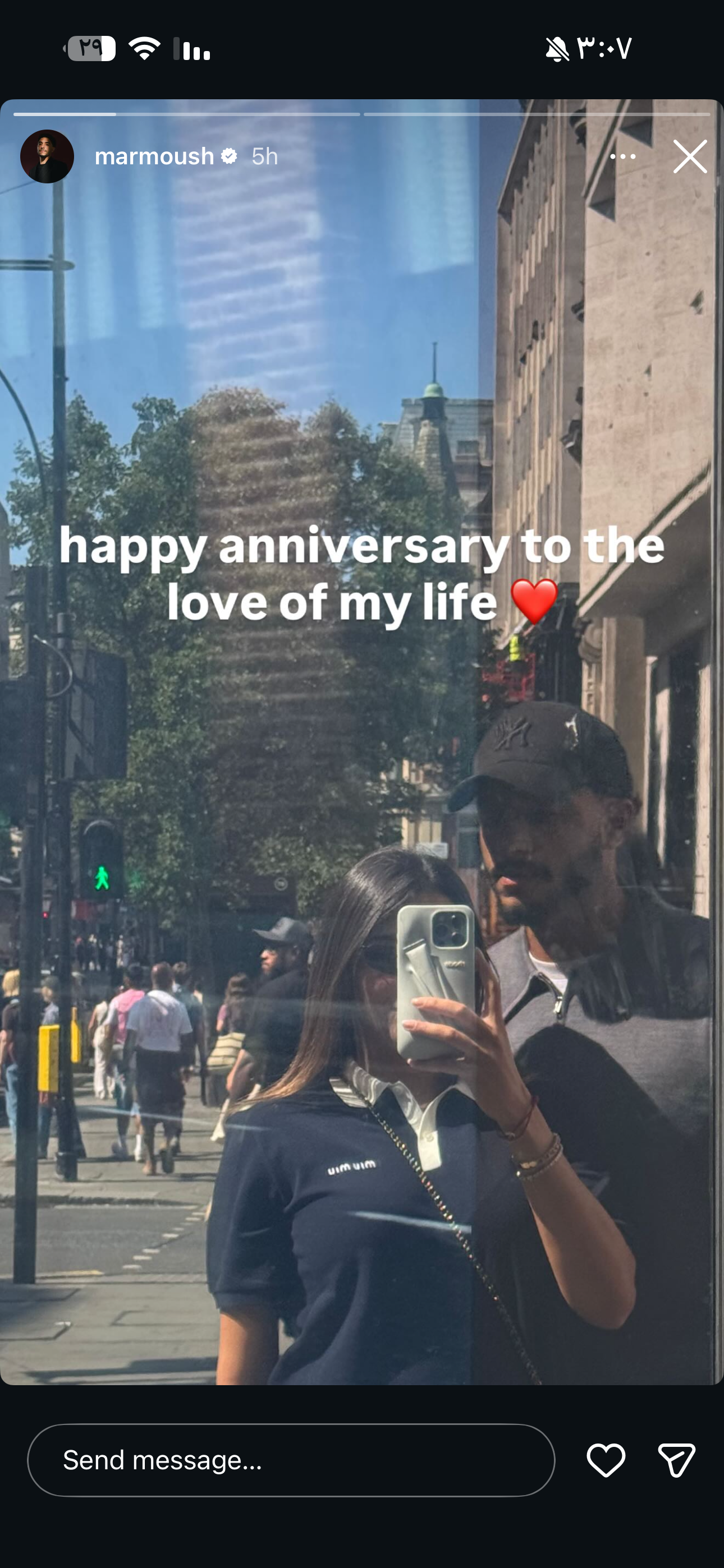 ونشر مرموش صورة تجمعه معاها عبر حسابه الرسمي بموقع التواصل الاجتماعي "انستجرام" وعلق : "ذكرى سنوية سعيدة لحب حياتي".