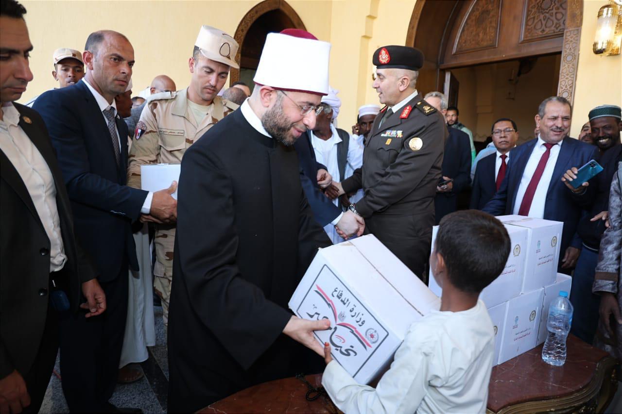 وعقب صلاة الجمعة، شارك الوزراء والقيادات في توزيع عشرة آلاف كرتونة غذائية وكمية ضخمة من السلع والبطاطين وجّه رئيس الجمهورية بإهدائها من مختلف مؤسسات الدولة إلى أهالي المنطقة، دعمًا للأسر الأولى بالرعاية، وتأكيدًا لمبادئ التكافل الاجتماعي، وتخفيفًا للأعباء عن المواطنين.