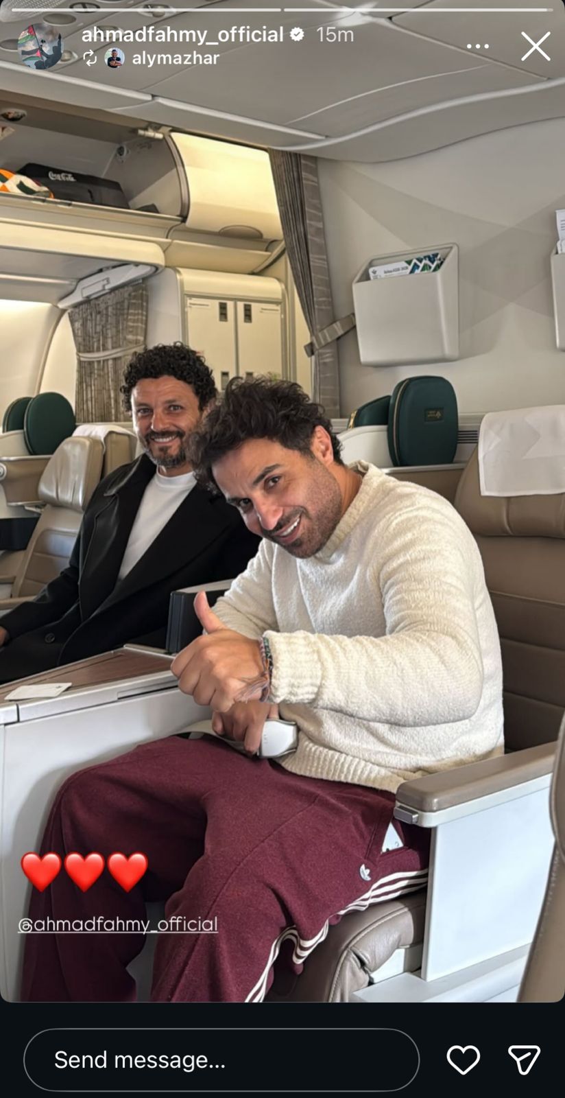 وظهر أحمد فهمي رفقة حسام غالي نجم الأهلي السابق من الطائرة.