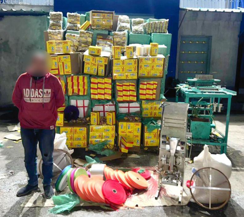 عقب تقنين الإجراءات أمكن ضبطه حال تواجده بالمخزن ملكه الكائن بدائرة القسم ، وبحوزته (قرابة 7 مليون قطعة ألعاب نارية مختلفة الأحجام والأشكال والأنواع – الأدوات المستخدمة فى التصنيع)، وبمواجهته أقر بنشاطه الإجرامى على النحو المشار إليه.