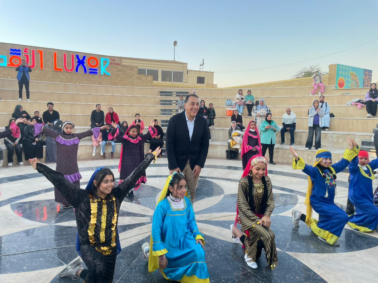 وشهد رئيس الوزراء عرضا لأطفال قصور الثقافة بالأقصر و فرق الكشافة حيث شهد عرض الأقصر بلدنا و وأغنية فلكلور "عندنا فرح واتنصب يا لابايش يا قصب" كما استمع قصيدة مصر من إحدى الأطفال ، واحنا جيل جديد جيل بيحب مصر .