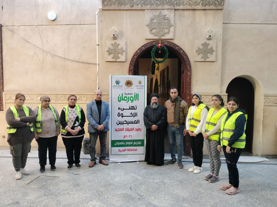 شاركت مديرية التضامن الاجتماعى بالغربية جمعية الأورمان فى تنظيم احتفالية كبرى لتوزيع عدد (300) كيلو لحوم مجانا على عدد (150) أسرة ضمن الأسر الأولى بالرعاية بكنيسة الشهيدة رفقة بقرية سنباط بمركز زفتي فى محافظة الغربية.