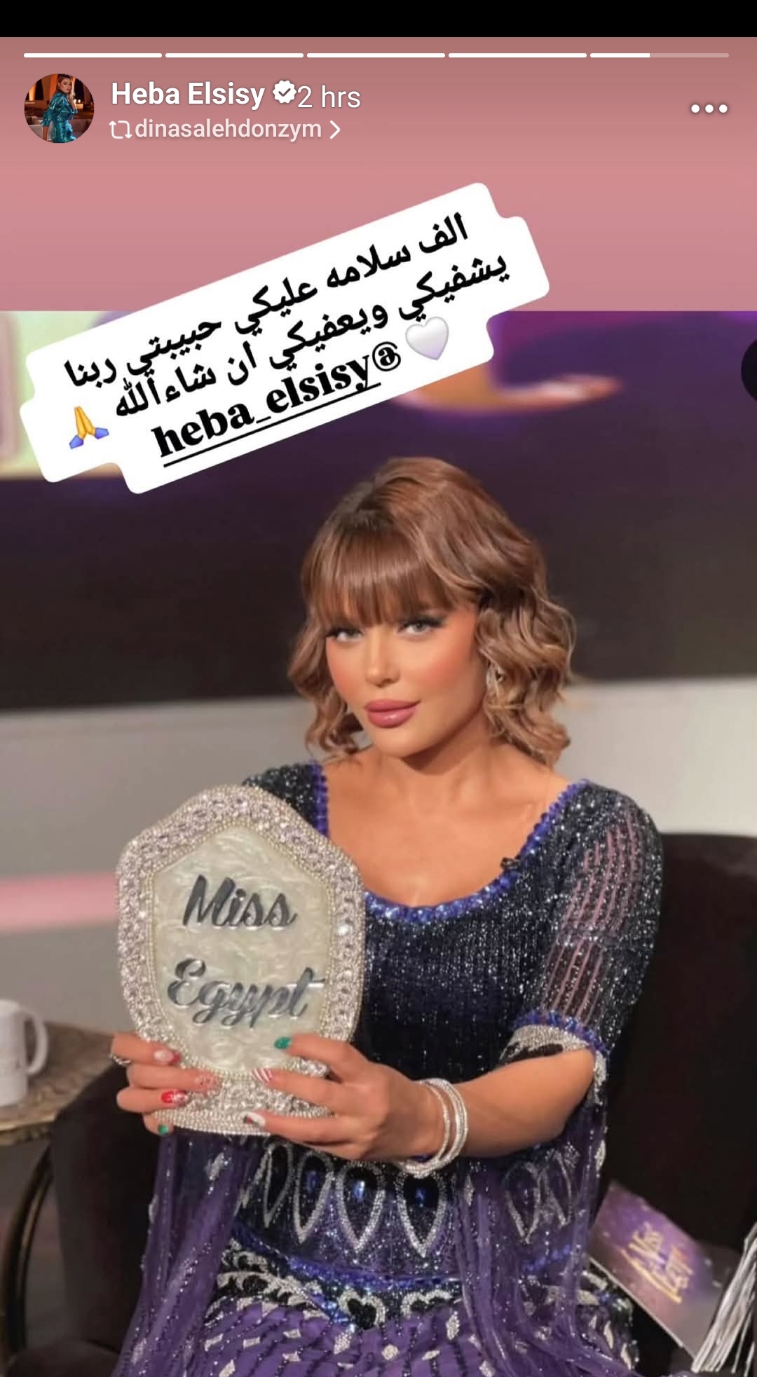 وكتبت الفنانة ياسمين جمال: “صاحبتي الغالية وعشرة سنين هبة السيسي بعد شوية داخلة تعمل عملية خطيرة.. فلو سمحتوا تدعوا لها تخرج بالسلامة وربنا يشفيها ويعافيها ويخليها لولادها يارب فضلا وليس أمرا فالدعاء يرد القضاء، اللهم اشفها شفاءً لا يغادر سقما رجاء الدعاء لو سمحتم”.