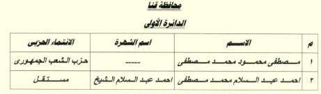 - مصطفى محمود محمد وأحمد عبد السلام مصطفى بالدائرة الأولى بقنا