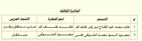 فوز المرشحين عصام العمدة وأحمد حسين جودة وعلي سيد معوض بالدائرة الثالثة الفتح بأسيوط