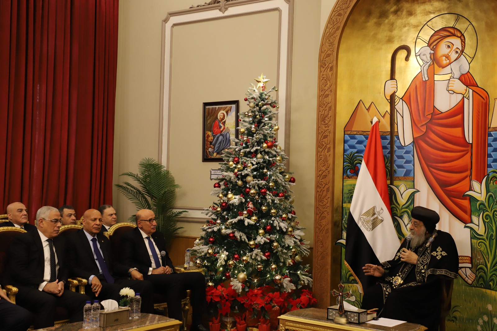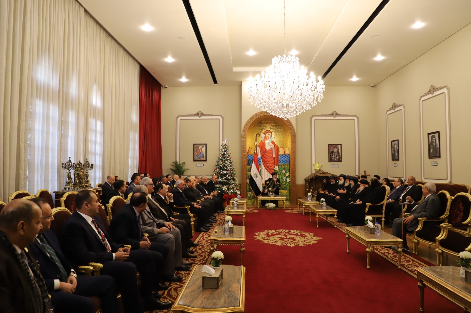 وخلال الزيارة، أكد القاضي عاصم الغايش على اعتزاز القضاء المصري بالدور الوطني والتاريخي الذي تضطلع به الكنيسة المصرية في ترسيخ قيم التسامح والمواطنة، مشيراً إلى أن عيد الميلاد المجيد مناسبة وطنية تجمع الشعب المصري على المحبة والوحدة الوطنية دعماً لرفعة الوطن واستقراره، متمنياً لقداسته ولجميع الإخوة الأقباط دوام الصحة والتوفيق.