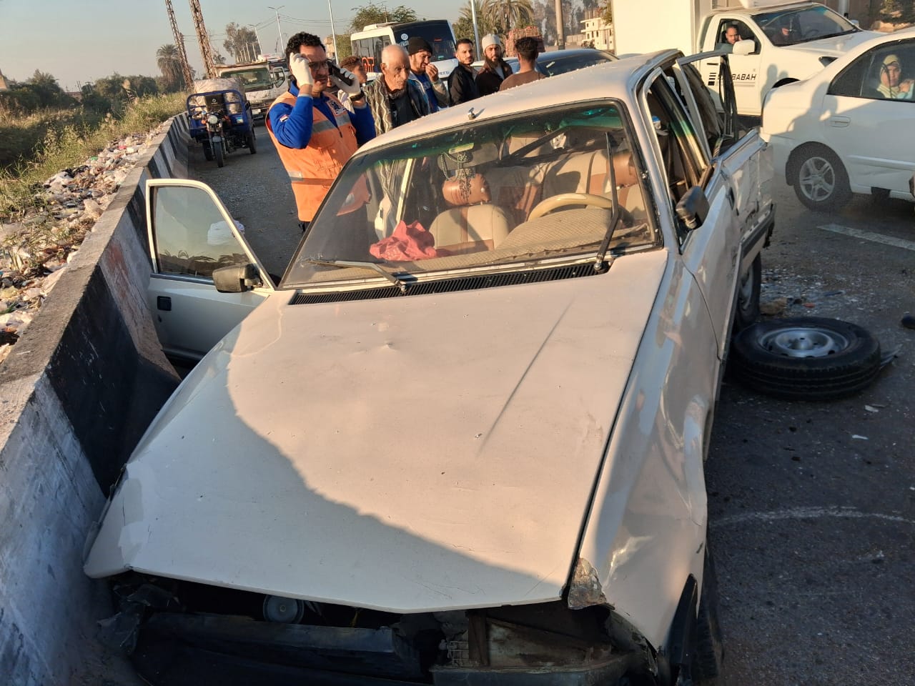 وانتقل إلى موقع الحادث ضباط القسم والإسعاف وتبين من المعاينة والفحص وقوع تصادم بين سيارة رفع مخلفات تابعة لقرية ريفا، مركز ومدينة أسيوط، تحمل لوحات ي ب أ 7418، وسيارة ملاكي تحمل لوحات ي ع ر 1364.