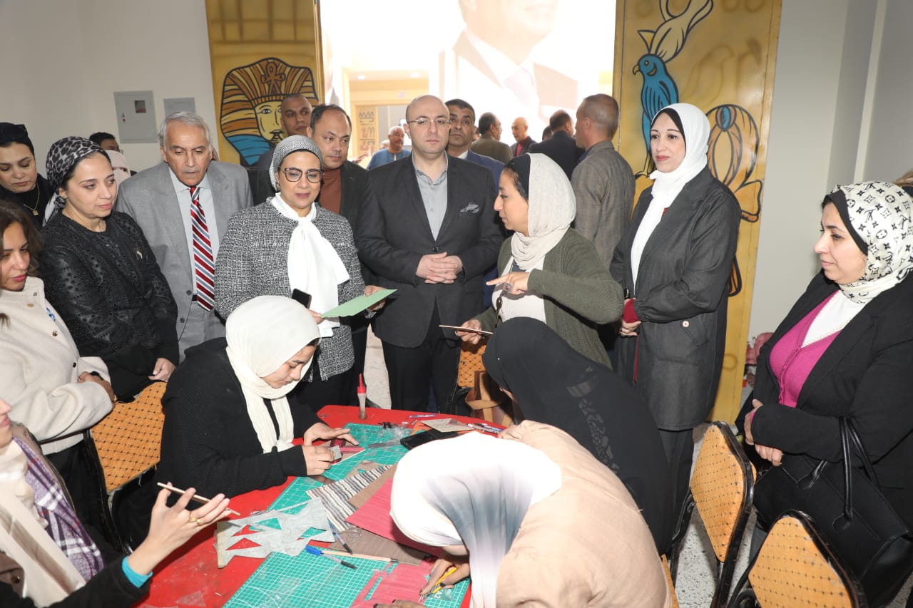 وعقب الافتتاح، تفقد المحافظ ورئيس الهيئة ورئيسة المجلس القومي للمرأة ، المركز الذي تم إنشاؤه على مساحة إجمالية 1200م2 ، بعزبة النور بقرية الهرم بمجلس قروي ميدوم شمال مركز الواسطى ، و يتميز بموقعه الحيوي لقربه من المنطقة الأثرية لواحة وهرم ميدوم،حيث تجول المحافظ داخل قاعات وورش المركز وعددها 24 ورشة بمساحات متفاوتة، وموزعة على دورين" أرضي وأول علوي" ، وتبادل الحوار مع السيدات والفتيات اللاتي تم تدربيهن على الصناعات الحرفية واليدوية والتراثية في مجالات : الخياطة و التطريز ،تصنيع السجاد اليدوى والكليم ،التحف والتماثيل الفرعونية من الرخام و والألباستر ،كراسي البامبو والجريد ، والحفر على النحاس والخشب، تصنيع المنتجات الخزفية والفخارية ، فضلاً تفقدأحد فصول محو الأمية داخل المركز ،حيث تابع المحافظ ومرافقوه جانبا من أعمال التدريس وعقد اختبارات محو أمية بالتعاون مع فرع الهيئة العامة لتعليم الكبار لتحرير الدارسين ومحو أميتهم الأبجدية ،للحصول على شهادات محو الأمية