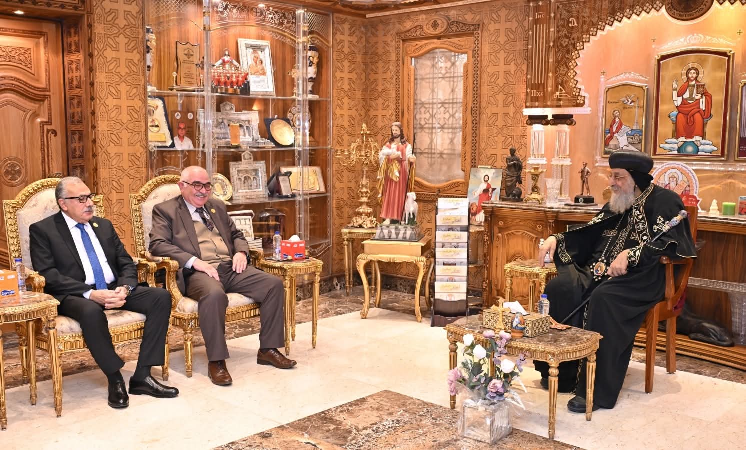كما استقبل قداسته، المستشار أسامة شلبي رئيس مجلس الدولة وأعضاء المجلس الدولة، حيث قدموا التهنئة لقداسته بمناسبة العام الجديد وعيد الميلاد المجيد.