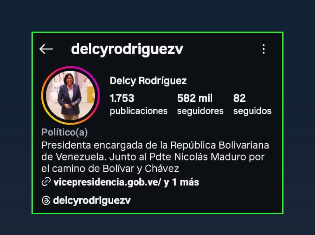 حدثت ديلسي رودريجيز نائبة الرئيس الفنزويلي نيكولاس مادورو النبذة التعريفية لحسابها الرسمي على منصة التواصل الإجتماعي "إكس".