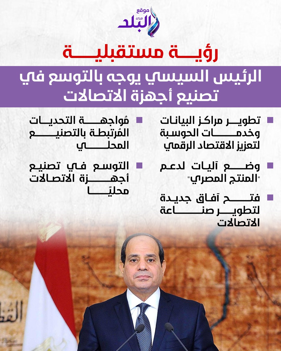 أكد الرئيس السيسي أهمية فتح آفاق جديدة لتطوير صناعة الاتصالات، ومُواجهة التحديات المُرتبطة بالتصنيع المحلي، موجهاً بدراسة فرص تطوير مراكز البيانات وخدمات الحوسبة السحابية، والتوسع في تصنيع أجهزة الاتصالات محليًا، ووضع آليات فعالة لدعم وتشجيع المنتج المحلي.
