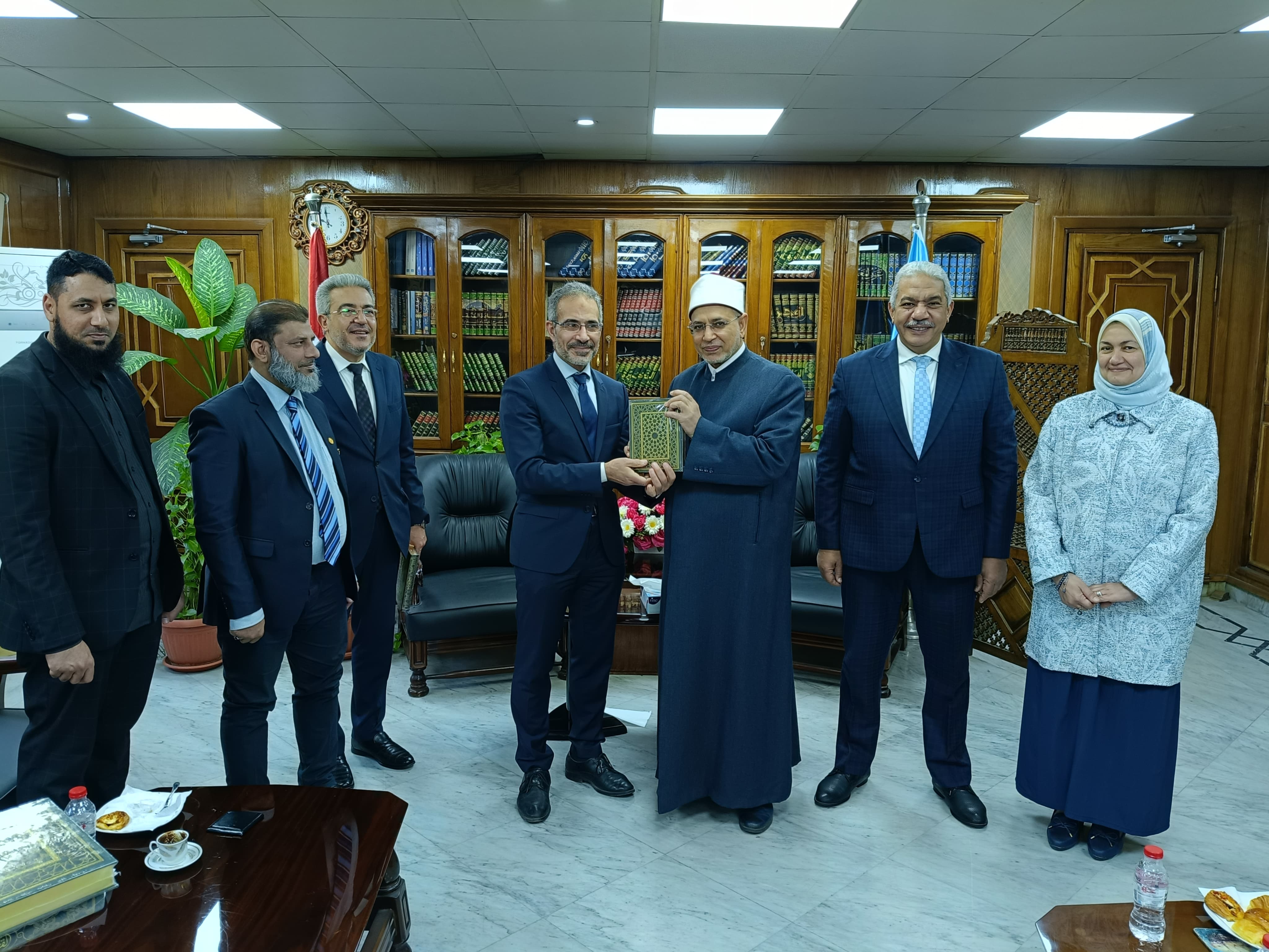 وأوضح رئيس الجامعة، أن هذا المنهج هو سر بقاء الأزهر الشريف شامخًا على مدار أكثر من ألف عام، جاء ذلك خلال استقبال فضيلته وفدًا هولنديًّا برئاسة الدكتور ياسر الليثي، عميد الدراسات الإسلامية بجامعة امستردام المستقلة بهولندا والأستاذ الزائر بجامعة الأزهر، والأستاذ أحمد الحسيني الحامولي، و أحمد رضا النقشبندي، مستشاري الرعاية الروحية في مصلحة السجون بوزارة العدل الهولندية، والشيخ محمد إشفاق، إمام المركز الإسلامي في روتردام بهولندا، بحضور الدكتور محمود صديق، نائب رئيس الجامعة للدراسات العليا والبحوث، والدكتور مصطفى عبد الغني، نائب رئيس الجامعة لفرع البنات وشئون الوافدين، والدكتورة نهلة الصعيدي، مستشار فضيلة الإمام الأكبر شيخ الأزهر الشريف.