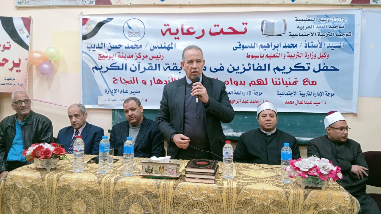 شهد محمد ابراهيم دسوقى وكيل وزارة التربية والتعليم بأسيوط اليوم الثلاثاء الحفل السنوى الذى اقامته إدارة أبوتيج التعليمية لتكريم حفظة القرآن الكريم من طلاب الإدارة.