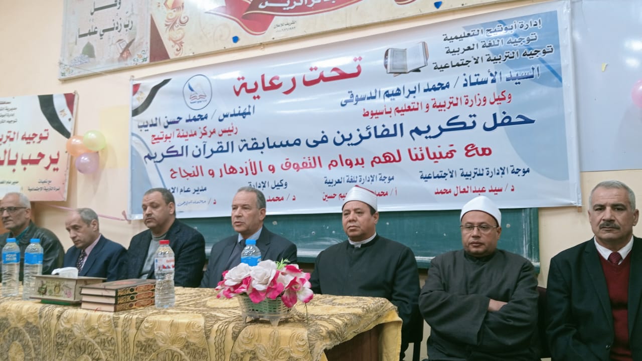 وبحضور الدكتور محمد العجان وكيل إدارة أبوتيج التعليمية والدكتور أحمد صفوت قراعة موجه عام اللغة العربية بالمديرية وخالد أحمد جمعة موجه عام التربية الدينية الإسلامية بالمديرية وفضيلة الشيخ يونس تركى مدير إدارة أوقاف أبوتيج ومحمد عبد الرحيم موجه أول اللغة العربية بإدارة أبوتيج التعليمية والدكتور سيد عبد العال موجه التربية الاجتماعية بالإدارة ومحمد البهنساوى مدير إدارة التعليم الفنى بأبوتيج ومحمد سعد مدير مدرسة أبوتيج الثانوية الصناعية الميكانيكية ولفيف من قيادات التربية والتعليم وتوجيه اللغة العربية والتربية الدينية الإسلامية.