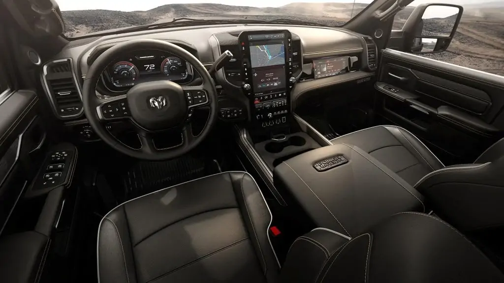 بالاضافة إلي ان سيارة رام باور واجن ديزل موديل 2027 بها، نظام فصل عمود التوازن، ونظام التعليق الهوائية، وبها مقاعد جلدية مهواة، وبها شاشة عملاقة مقاس 14.5 بوصة تعمل بنظام Uconnect 5 الذي يدعم الخرائط المحلية واللغة العربية ببراعة، وبها نظام صوتي فاخر يجعلك تعيش تجربة سينمائية وسط الهدوء الصحراوي.