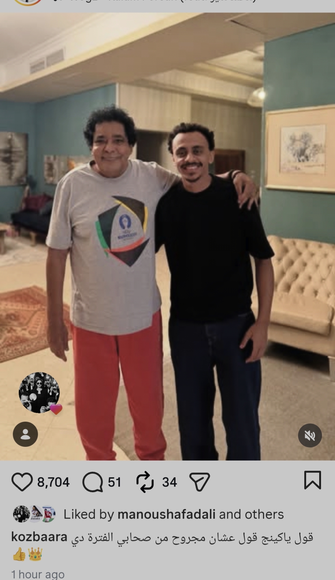 ووجه أحمد بحر الشهير ب"كزبرة" الشكر للفنان الكبير محمد منير علي استضافته في منزله، قائلًا: شكرا على اليوم الجميل ده ياكينج بحبك حب مش عادي .