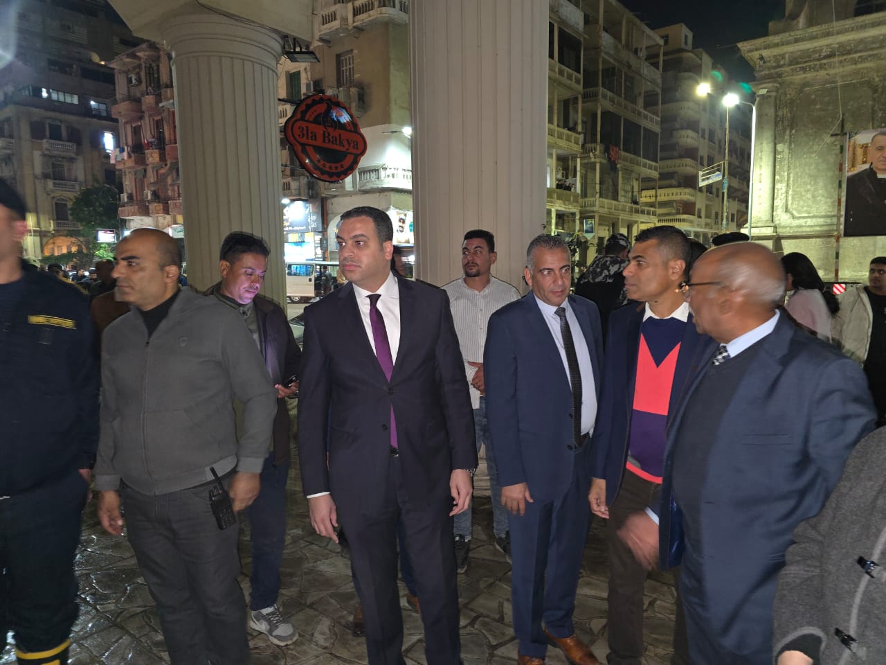 مصاب واحد.. مدير الأمن ونائب محافظ بورسعيد يتفقدان موقع حريق مطعم شهير في ليلة عيد الميلاد