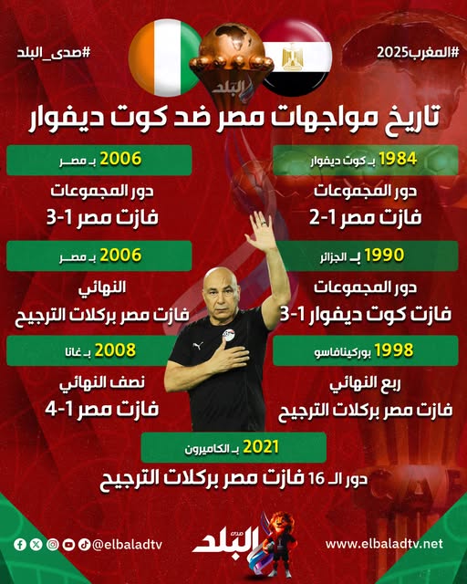 وتترقب الجماهير مواجهة مصر وكوت ديفوار، في لقاء يحمل تاريخًا طويلًا من الصدامات القوية بين المنتخبين في كأس الأمم الأفريقية، حيث سبق أن تواجه الطرفان في عدة مناسبات حاسمة، شهدت تفوقًا ملحوظًا للفراعنة في أغلبها.