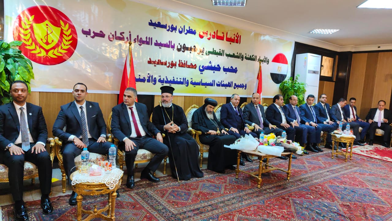 من جانبه، رحب الأنبا تادرس، مطران بورسعيد، بالحضور، معربًا عن سعادته بهذه الأجواء التي تعكس عمق المحبة بين أبناء الوطن الواحد، مشيرًا إلى الدروس الإنسانية المستفادة من هذه المناسبة العظيمة، متمنيًا لمحافظ بورسعيد والقيادات التنفيذية التوفيق في استكمال مشروعات التنمية لتكون بورسعيد نموذجًا يحتذى به.
