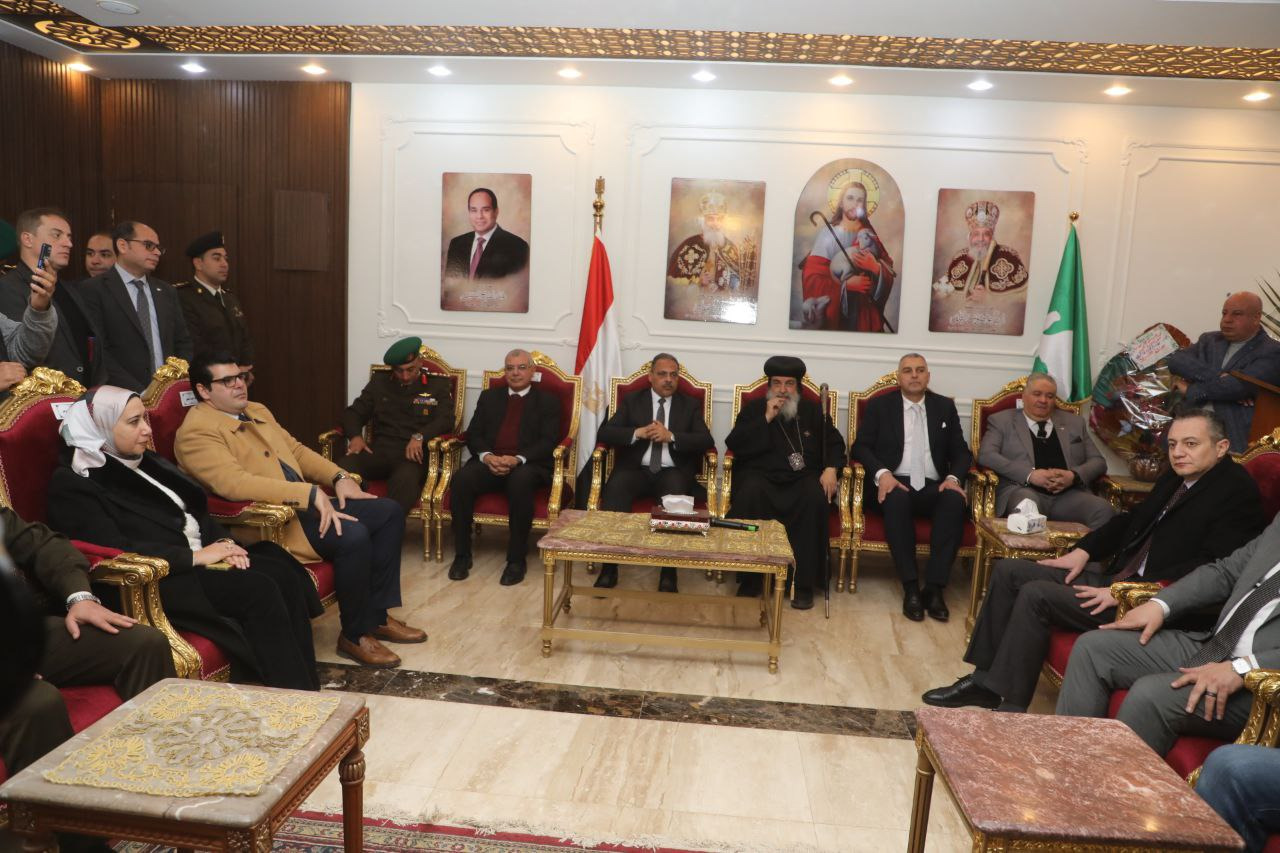استهل المحافظ الزيارة بتقديم التهنئة بمناسبة الإحتفال بعيد الميلاد المجيد داعياً المولي عز وجل أن يعيد هذه المناسبة المجيدة على مصر وشعبها بدوام الخير والرخاء، معرباً عن سعادته بروح المحبة والألفة والترابط بين المصريين والتى تتجسد فى أبهى صورها خلال المناسبات الدينية والوطنية.