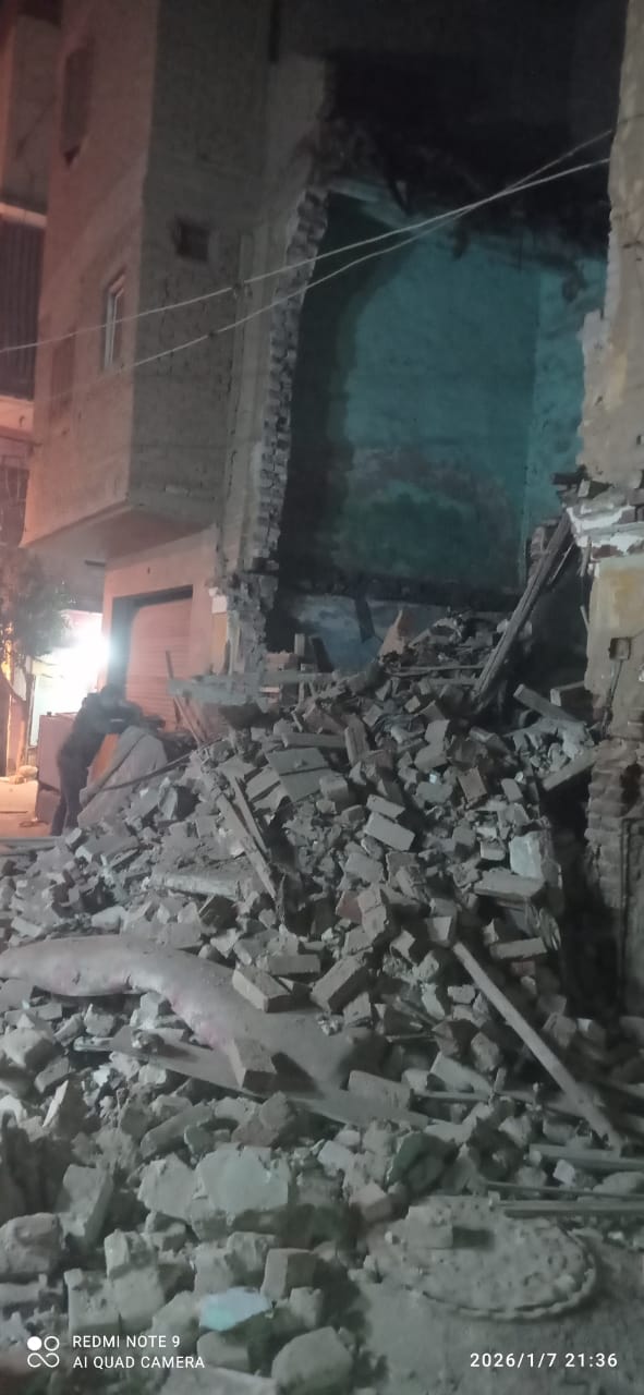 وكان قد انهار جزء من مبنى سكني قديم مقام على حوائط حاملة وأسقف خشبية بارتفاع دورين، وهو خالٍ من السكان، ولم يسفر الحادث عن أي إصابات أو أضرار مادية.