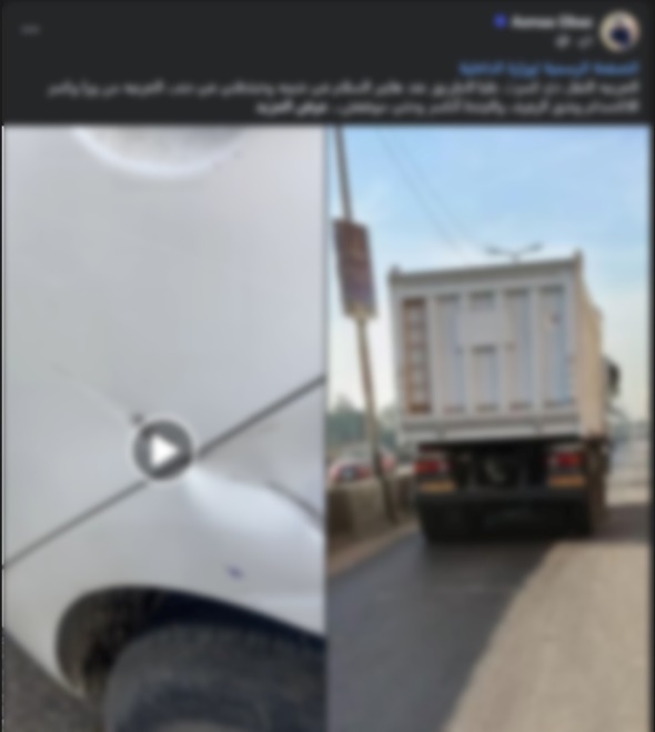 كشفت الأجهزة الأمنية ملابسات منشور مدعوم بصورة تم تداوله بمواقع التواصل الاجتماعى تضمن تضرر القائمة على النشر من قيام قائد سيارة "نقل" بالاصطدام بسيارتها وإحداث تلفيات بها ولاذ بالفرار حال سيرها بالشرقية.