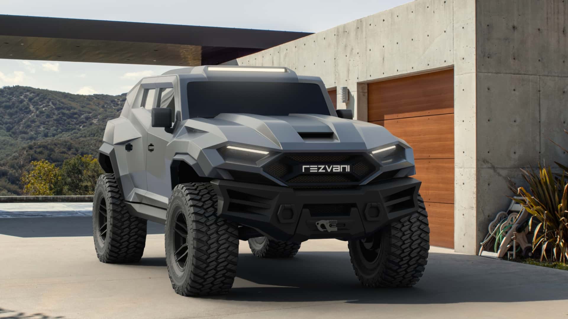 يعزز التصميم الخارجي هذا التوجه من خلال مصابيح أمامية حادة تعمل بتقنية LED، إضافة إلى شريط إضاءة علوي مخصص لتحسين الرؤية في البيئات المظلمة، كما زُودت السيارة بدروع باليستية وزجاج مقاوم للرصاص، إلى جانب نظام رؤية ليلية وحماية خاصة أسفل الهيكل ضد الهجمات، ما يعكس فلسفة ريزفاني القائمة على أقصى درجات الأمان.