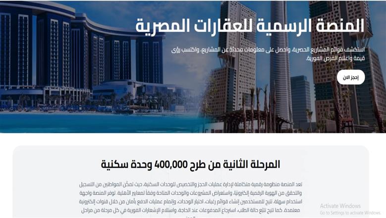 خطوات التسجيل في منصة مصر العقارية
