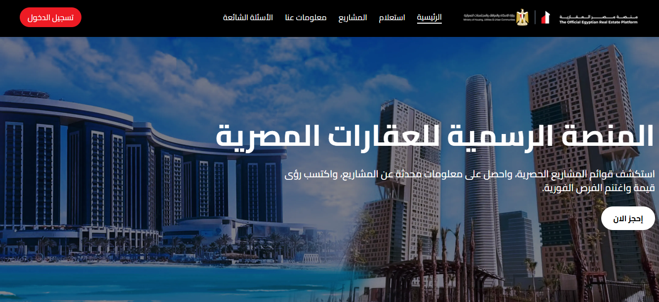 ـ الدخول إلى الموقع الإلكتروني لمنصة مصر العقارية.