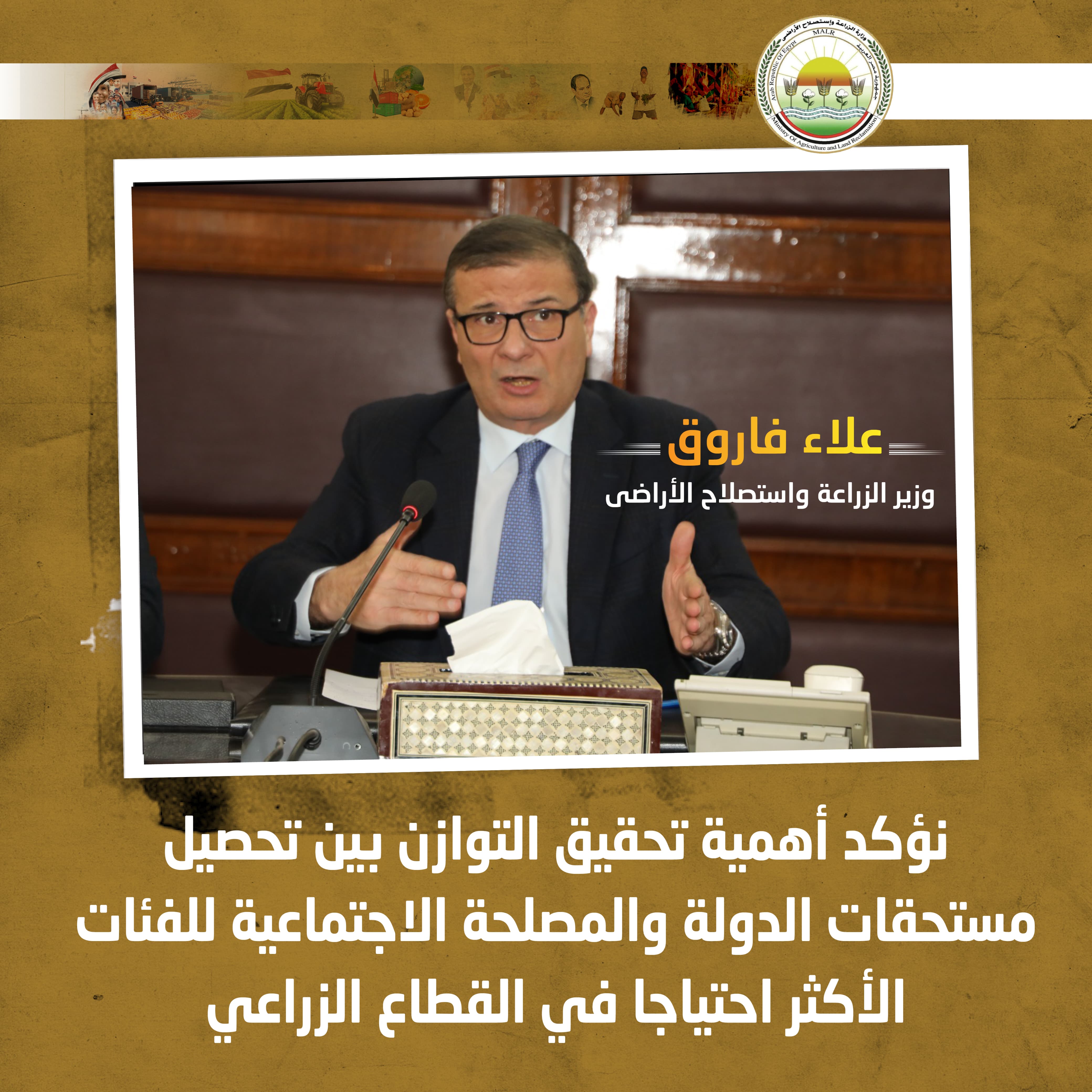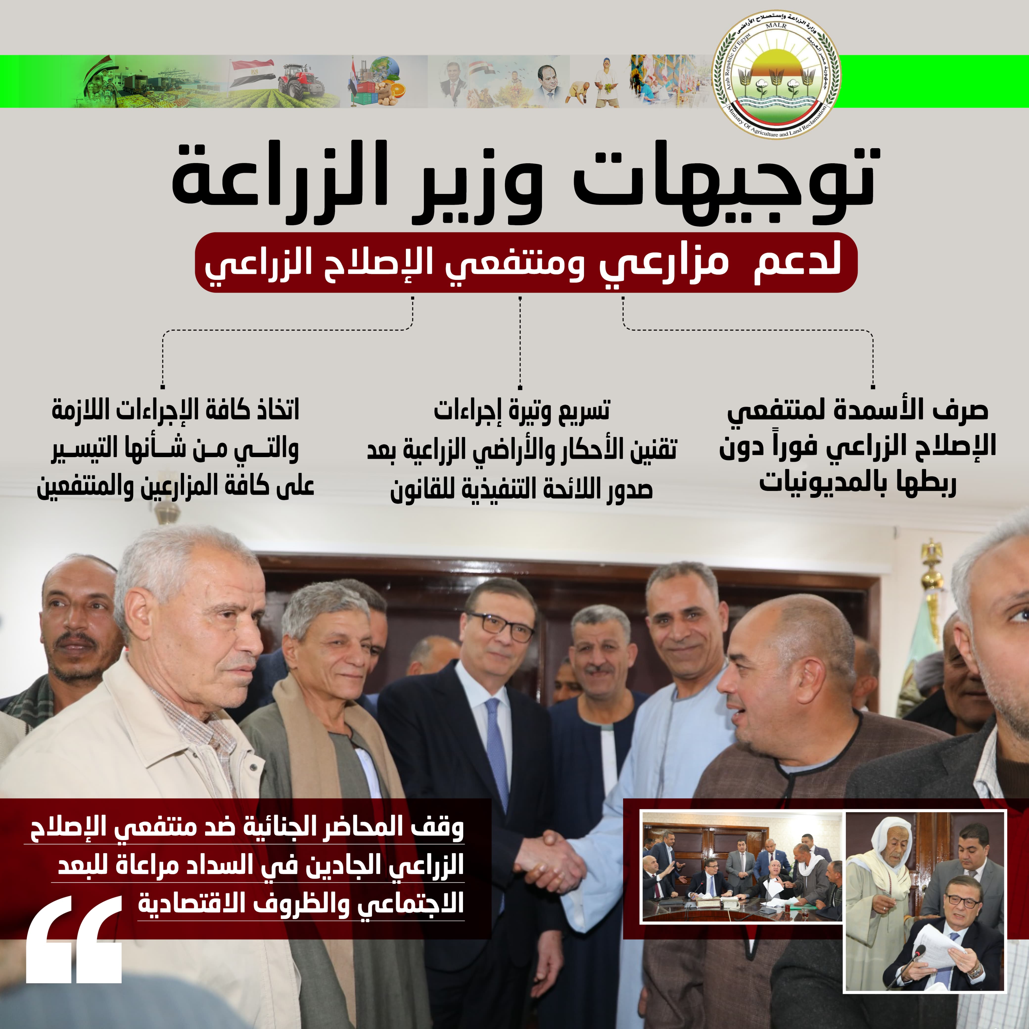 وزير الزراعة يوجه بوقف المحاضر الجنائية ضد منتفعي الإصلاح الزراعي الجادين مراعاة للبعد الاجتماعي والظروف الاقتصادية