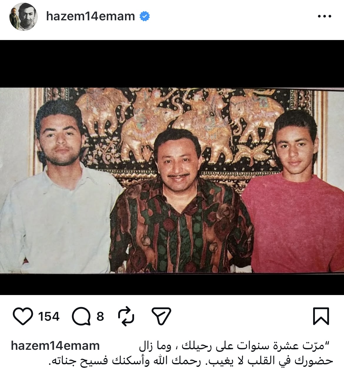أحيا حازم إمام، نجم الزمالك السابق، ذكرى رحيل والده، عبر حسابه الشخصي على موقع التواصل الاجتماعي انستجرام.