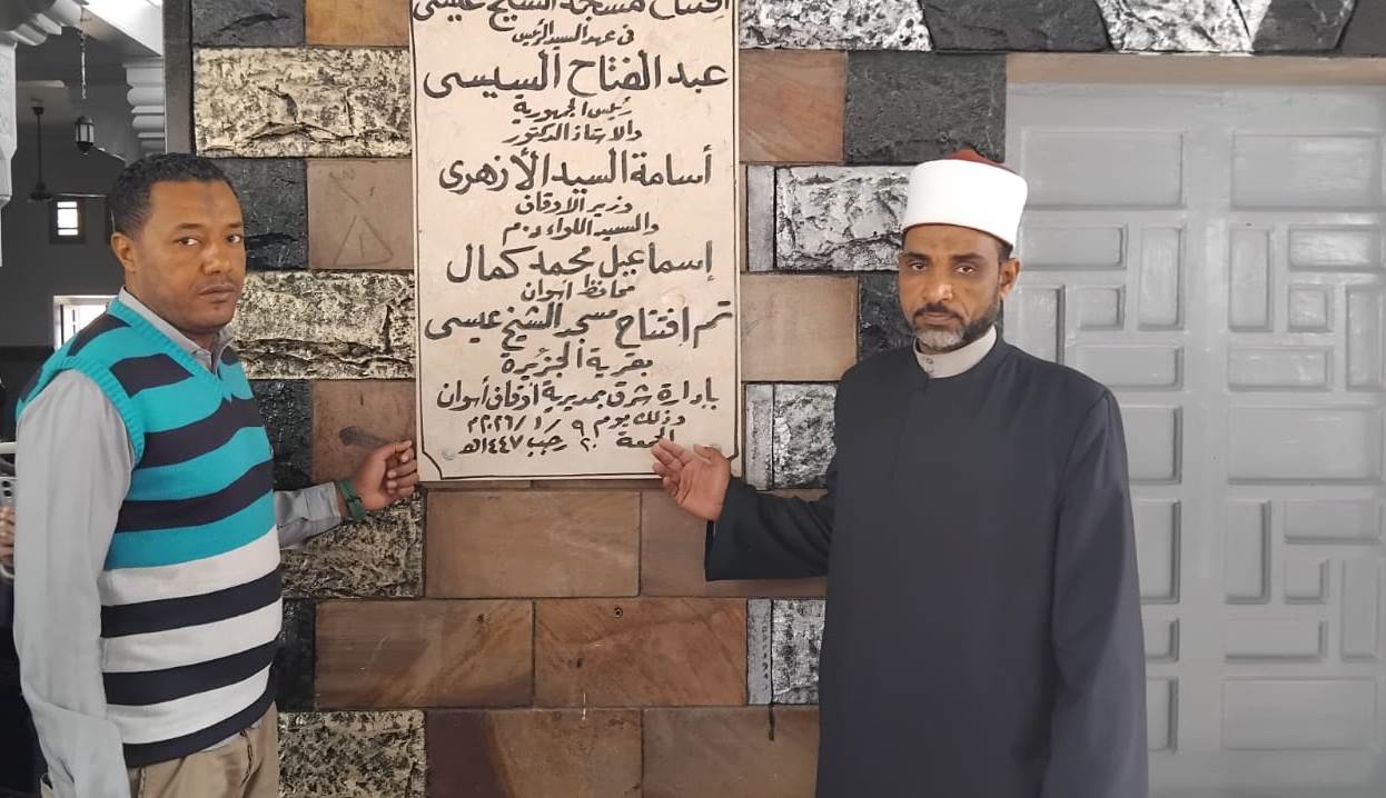 تابع اللواء دكتور إسماعيل كمال محافظ أسوان إفتتاح مسجد الشيخ عيسى بمنطقة الجوزيرة بنطاق حى شرق مدينة أسوان ، وذلك بحضور الدكتور محمود عبد الرحيم مدير الدعوة نائباً عن الدكتور حازم محمد وكيل الوزارة ، وأيضاً الشيخ عبد الله عرجون رئيس قسم المساجد ، ومحمد محمود نائب رئيس المدينة ، وبحضور القيادات التنفيذية والدينية والشعبية .