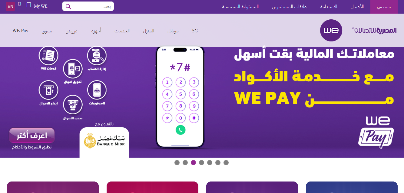 ـ الموقع الإلكتروني للشركة المصرية للاتصالات.