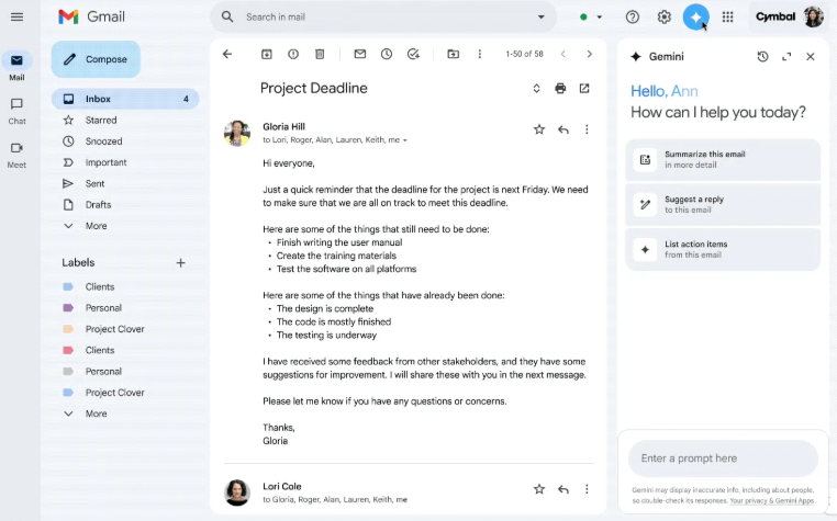 وأكدت جوجل أنه لا توجد أي تغييرات على توفر لوحة Gemini الجانبية في Gmail لمشتركي Google Workspace.