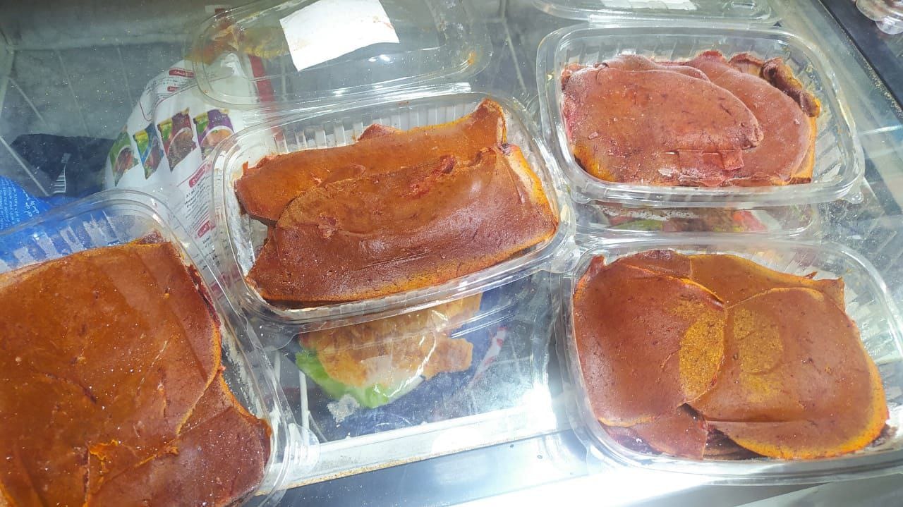 - 259 كيلو جرامًا من مصنعات لحوم ودواجن (كبد، قوانص، دبابيس) في حالة إذابة كاملة وغير صالحة للاستهلاك.