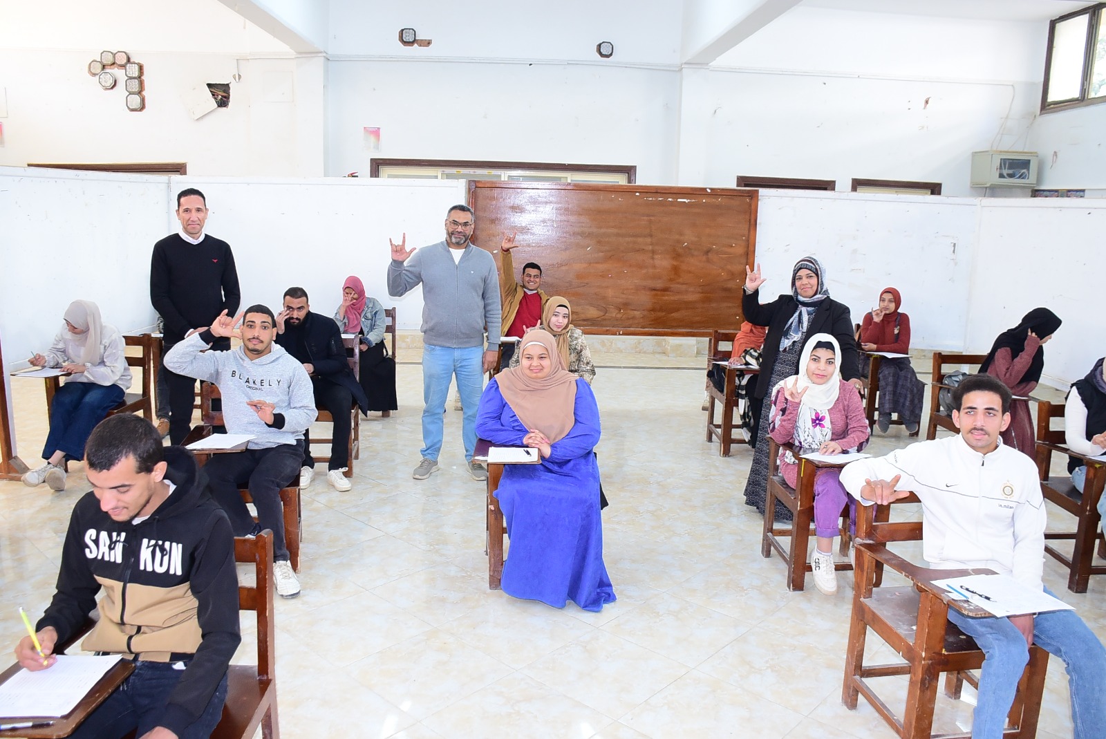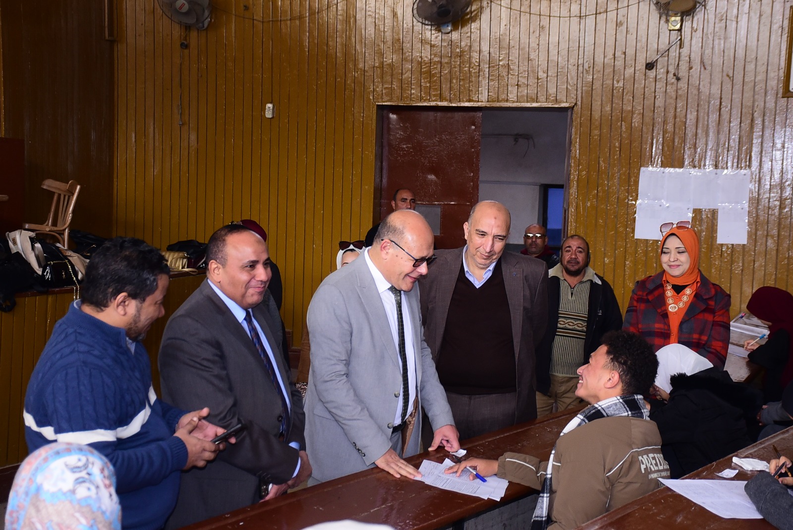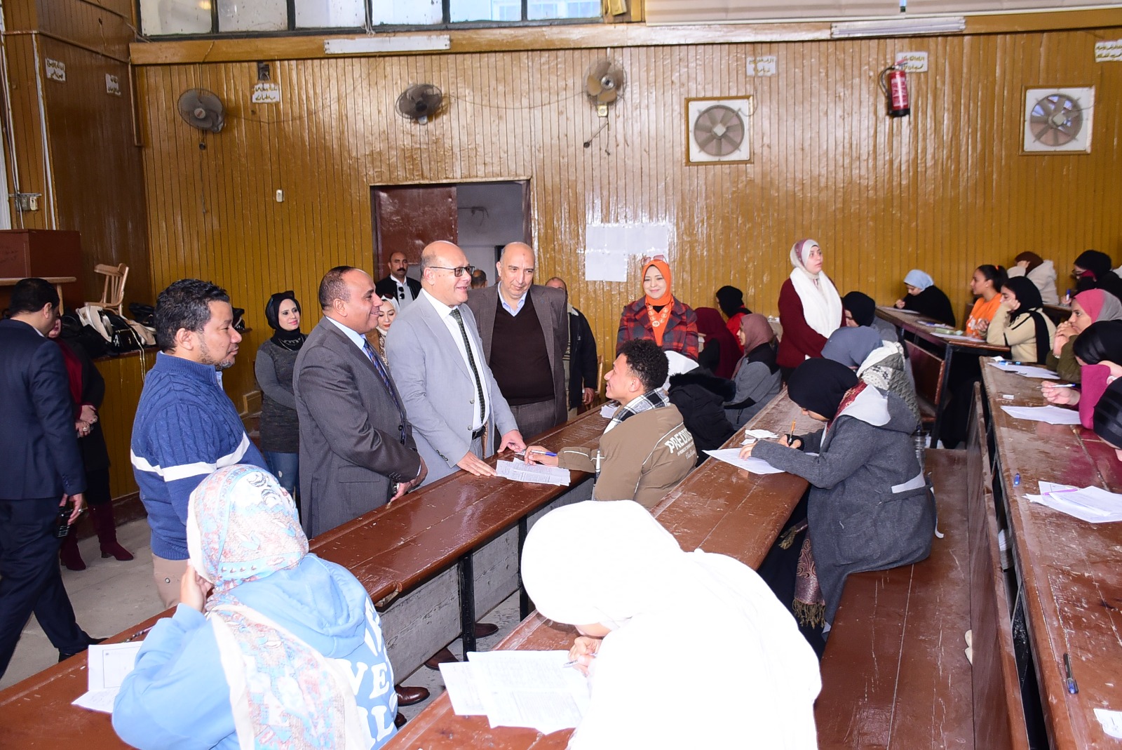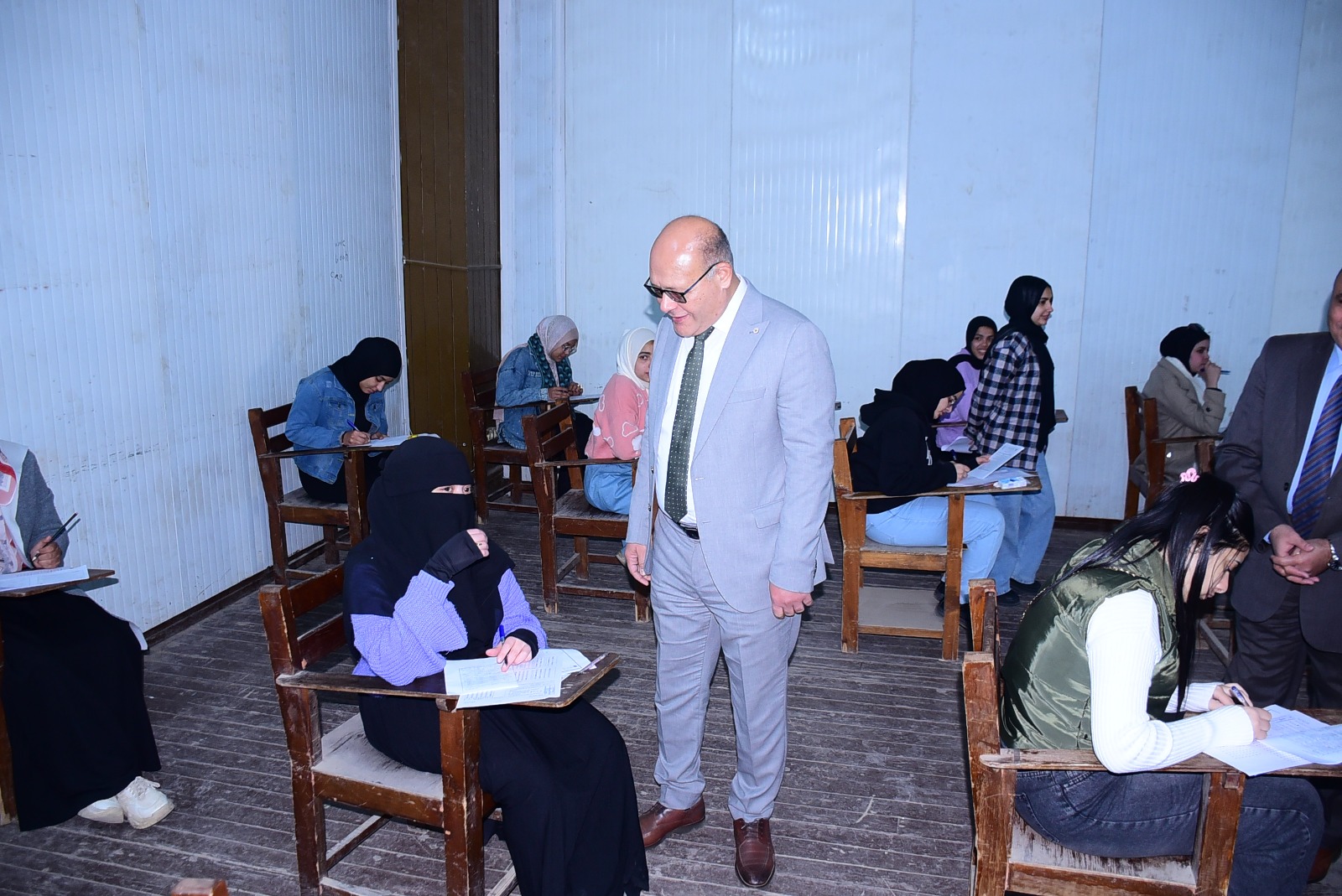 واللجنة الامتحانية المخصصة للطلاب الصم بالكلية للاطمئنان على انتظام العملية الامتحانية وتوفير الأجواء المناسبة للطلاب يرافقه الدكتور خالد عبد اللطيف عمران نائب رئيس الجامعة لشؤون خدمة المجتمع وتنمية البيئة والمشرف على كلية التربية النوعية وعدد من اعضاء هيئة التدريس بالكلية.